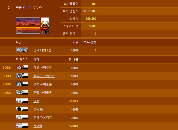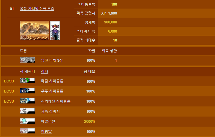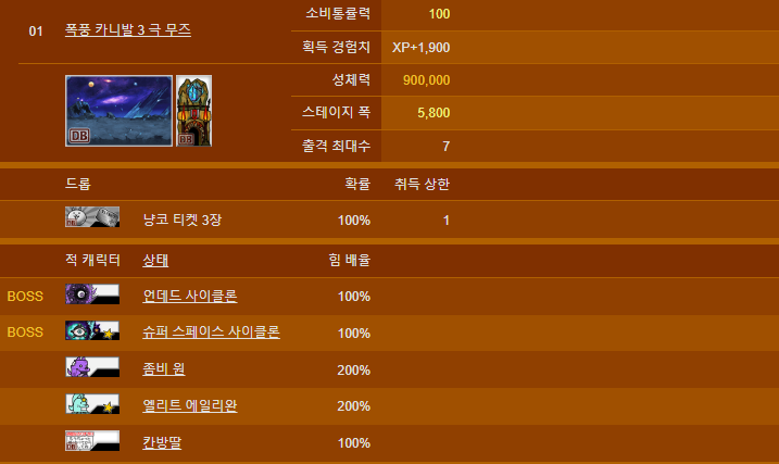 우선 폭풍 카니발 2 극난도입니다. 메탈 사이클론과 스페이스 사이클론, 허리케인 사이클론이 등장합니다. 메탈 사이클론이 등장하는만큼 못해도 크리캐 만큼은 무조건 챙기시길 바랍니다.
