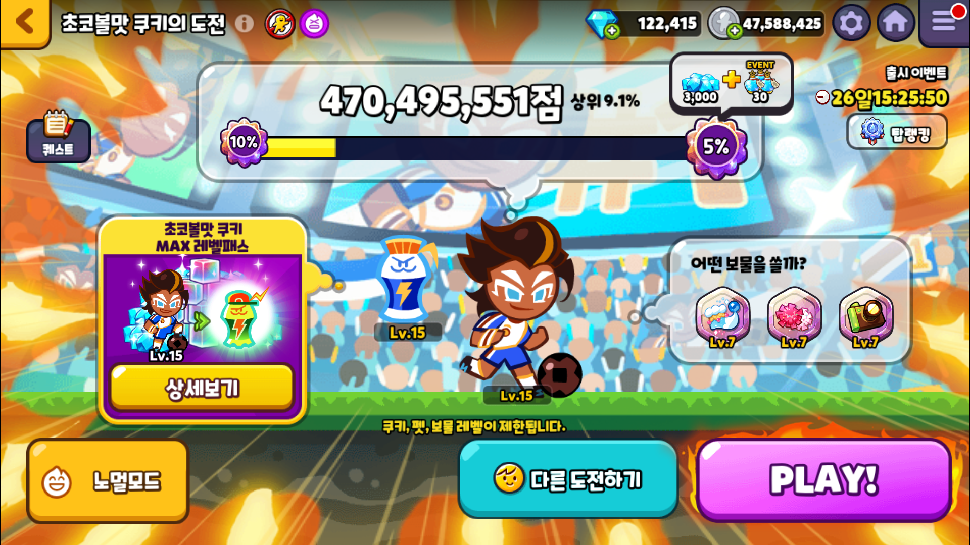 3.초코볼맛 쿠키의 도전 노멀모드 정산보상