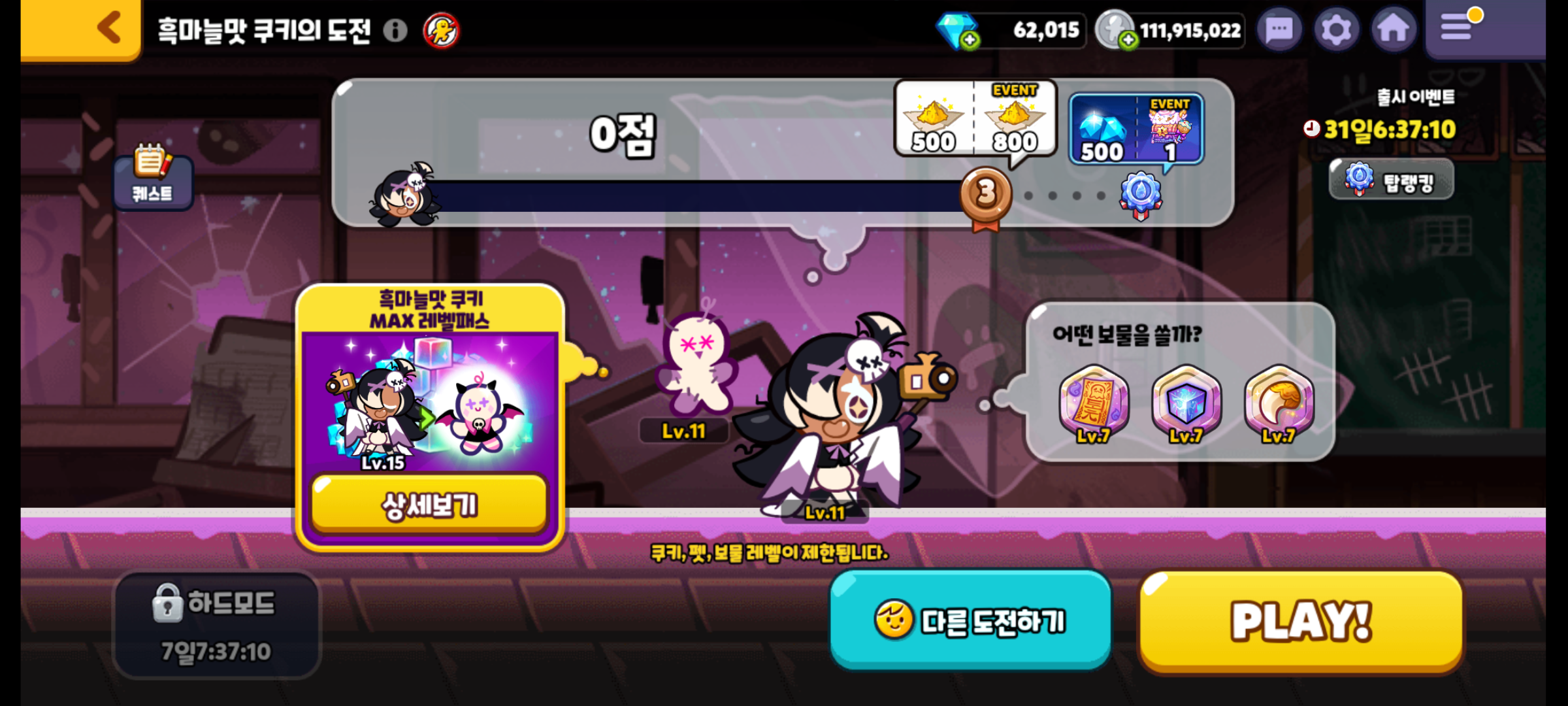 최초로 노멀모드와 하드모드가 같이 열리지 않는 쿠키의 도전입니다.