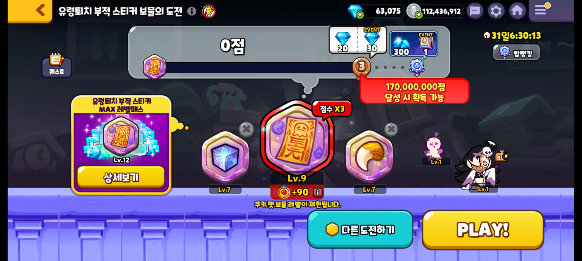 유령퇴치 부적 스티커 보물의 도전입니다. 흑마늘맛 쿠키로 달려야하는군요.