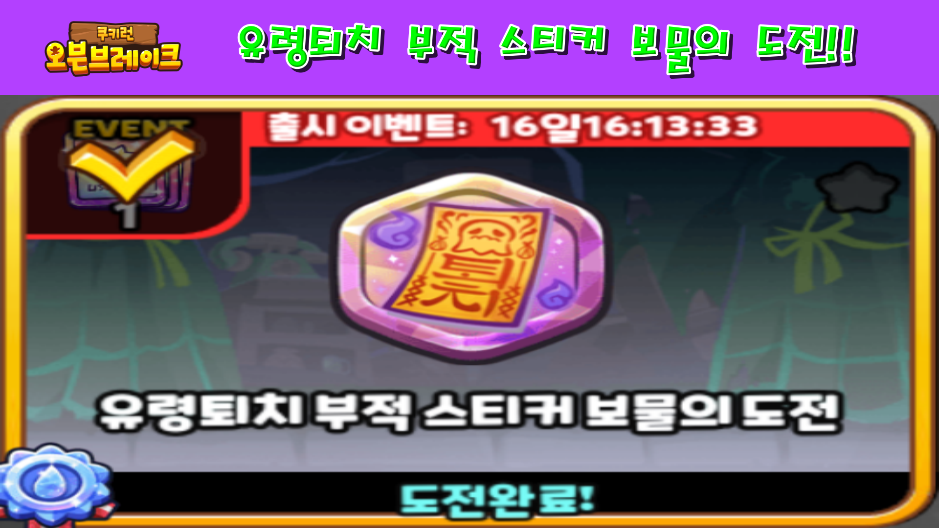 쿠키런 오븐브레이크 유령퇴치 부적 스티커 보물의 도전