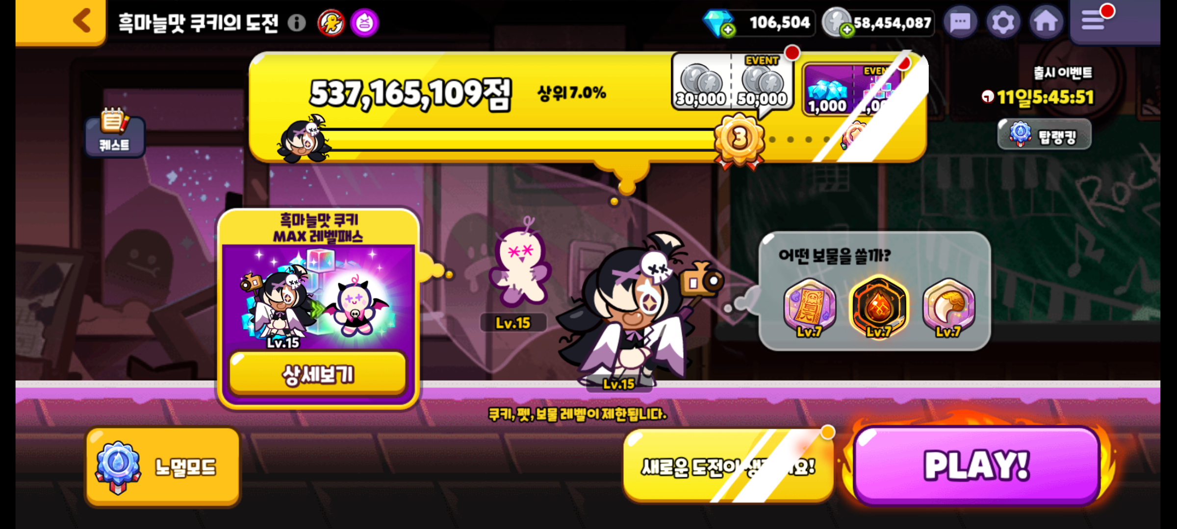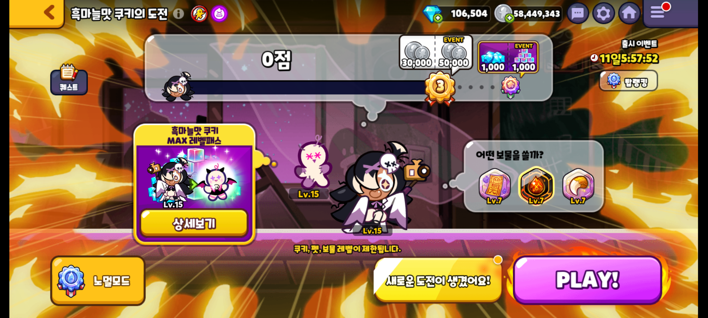 드디어 열린 흑마늘맛 쿠키의 도전 하드모드입니다. 그리고 아래는 흑마늘맛 쿠키의 도전 하드모드 달성 보상 및 출시 이벤트 기간 한정 보상입니다.
