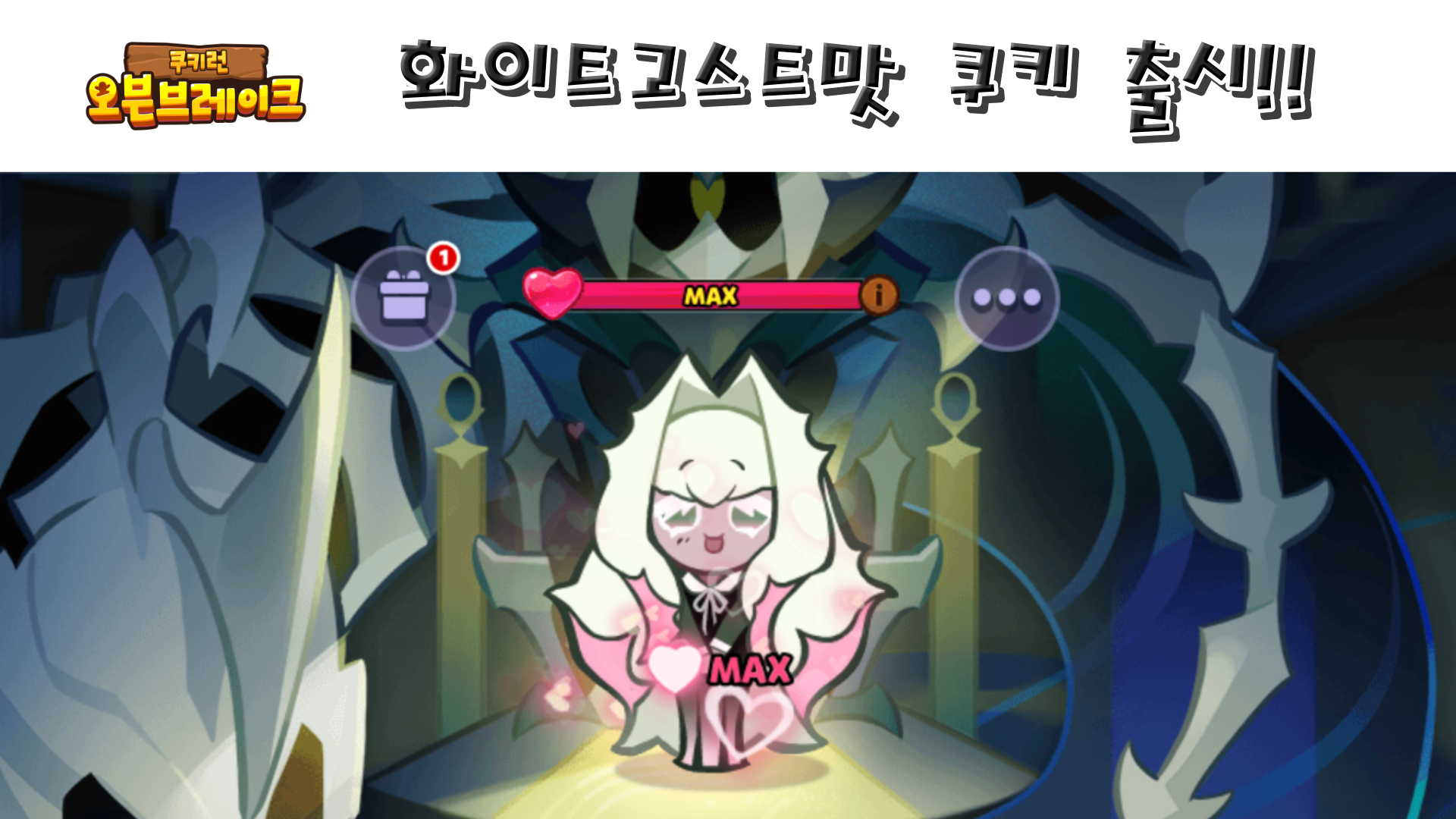 오늘 이렇게 쿠키런 오븐브레이크에 새로 추가된 화이트고스트맛 쿠키, 쨍강거울 펫 뽑아보고 만렙찍고 그것을 리뷰해보는 시간을 가져봤습니다.