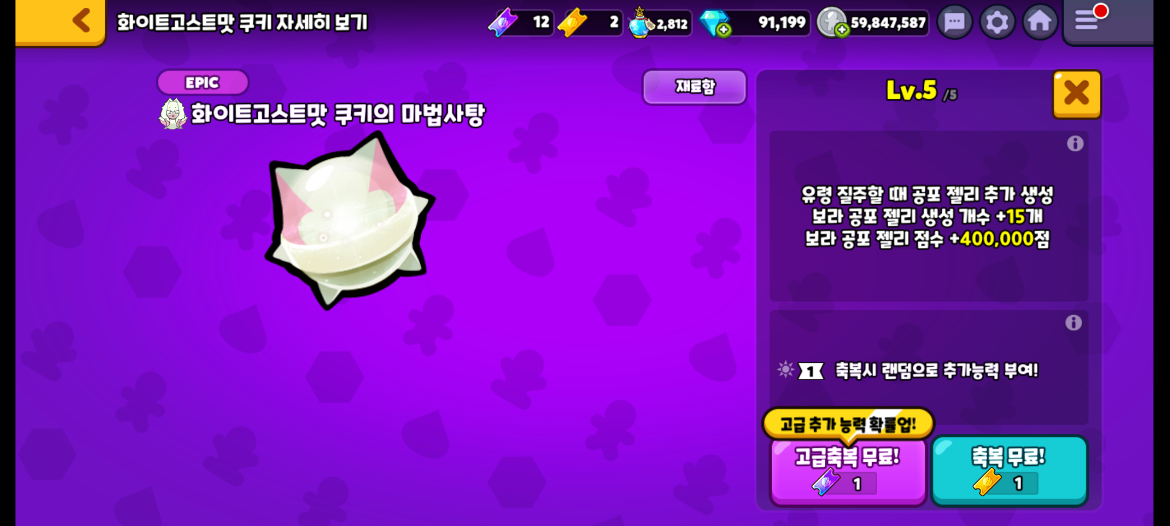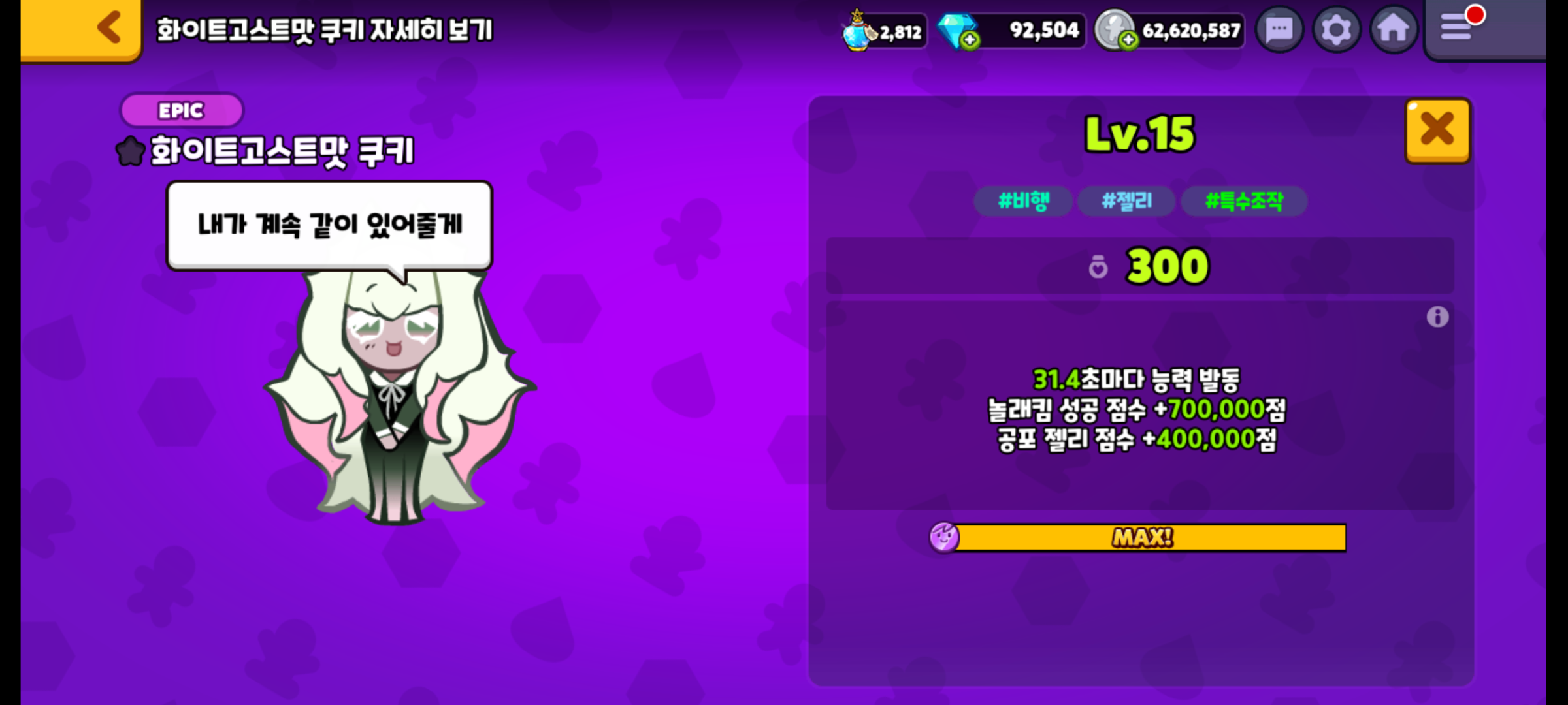 역시나 화이트고스트맛 쿠키의 마법사탕도 만렙 찍었습니다.