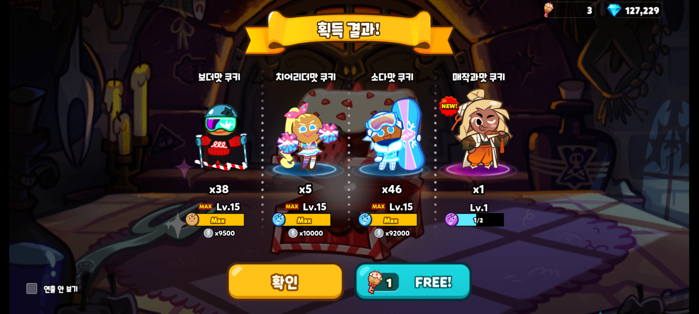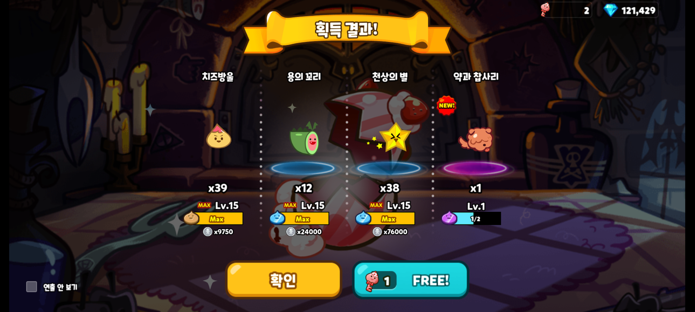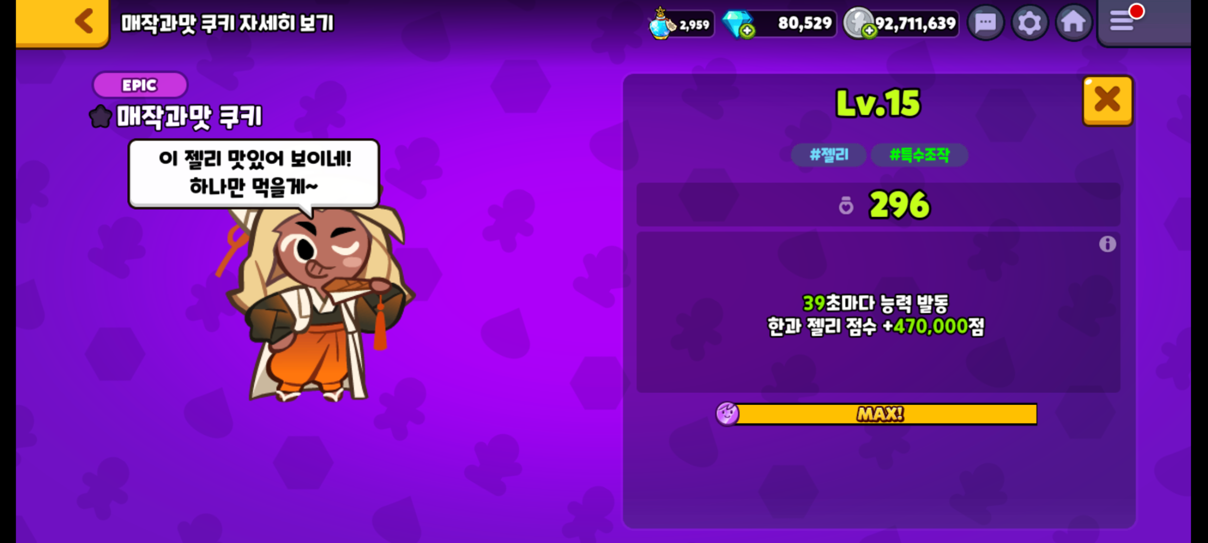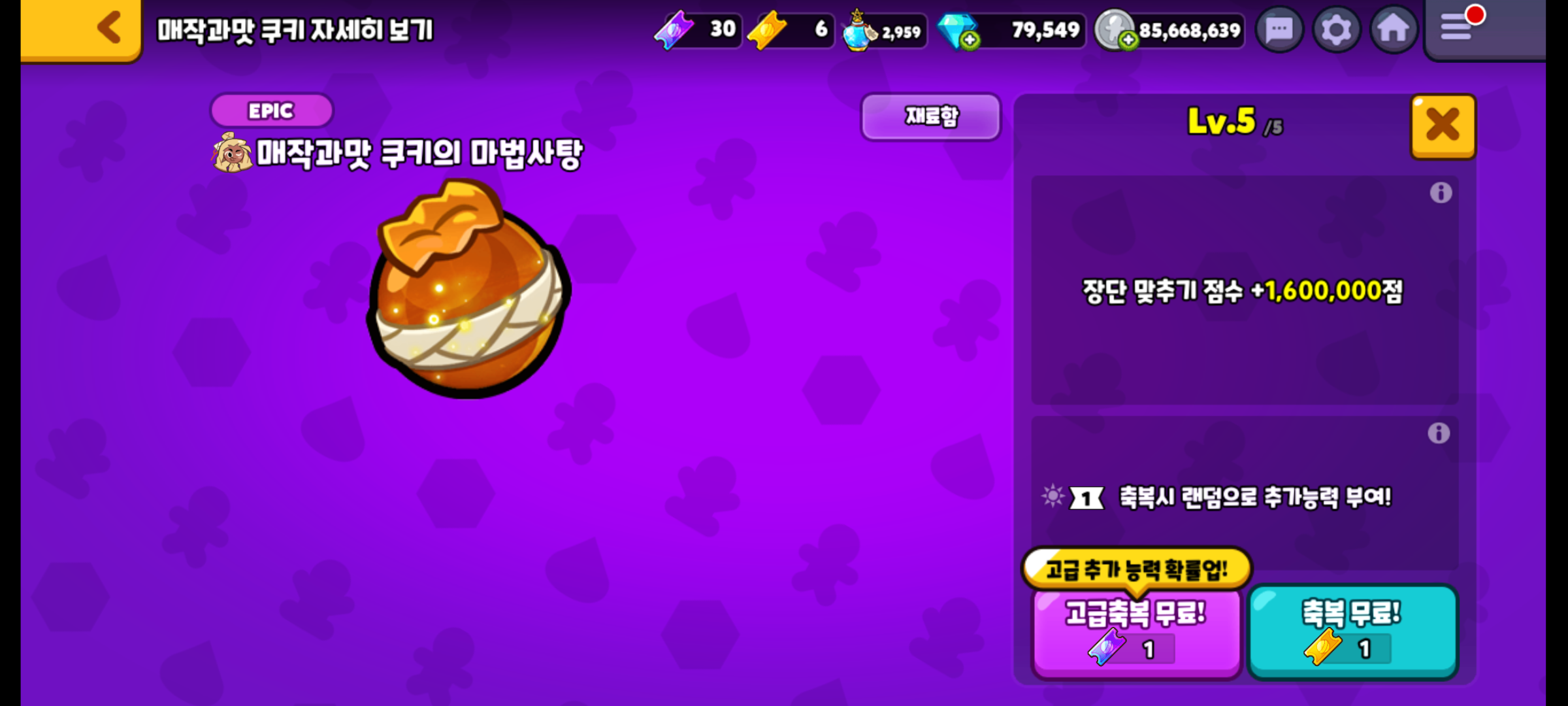 역시나 매작과맛 쿠키의 마법사탕도 만렙을 찍어줬습니다.