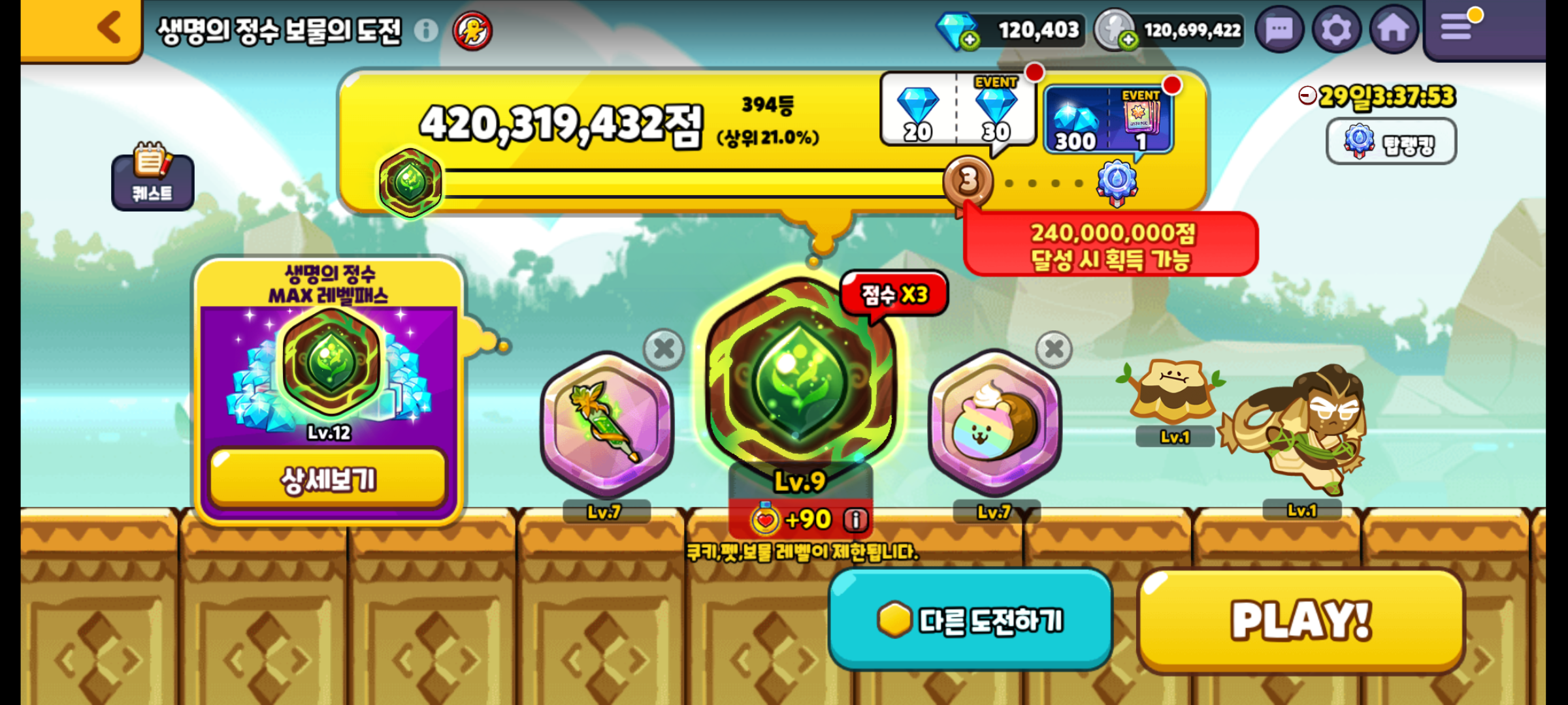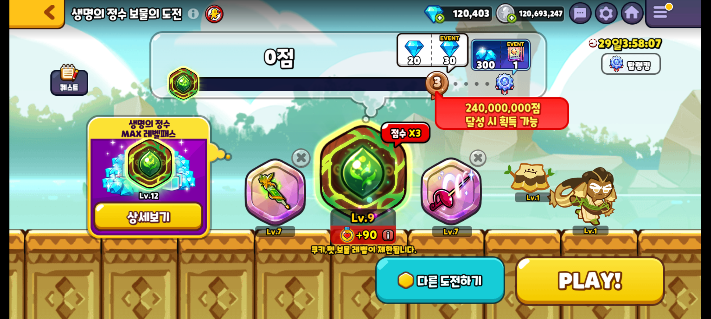 쿠키런 오븐브레이크 생명의 정수 보물의 도전