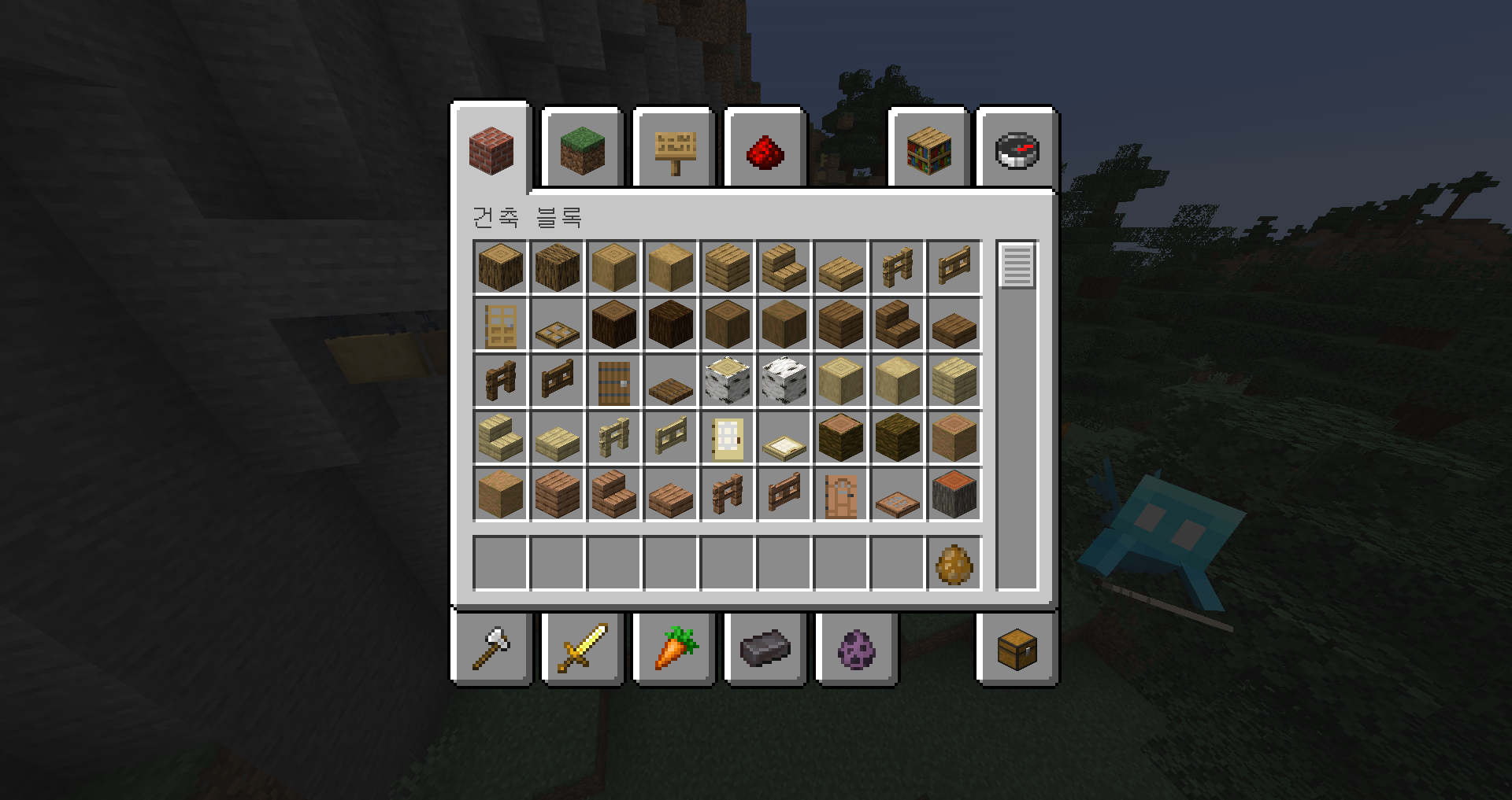 크리에이티브 인벤토리의 탭 순서와 콘텐츠가 관련 블록과 아이템을 더 쉽게 찾을 수 있도록 조정되었습니다.