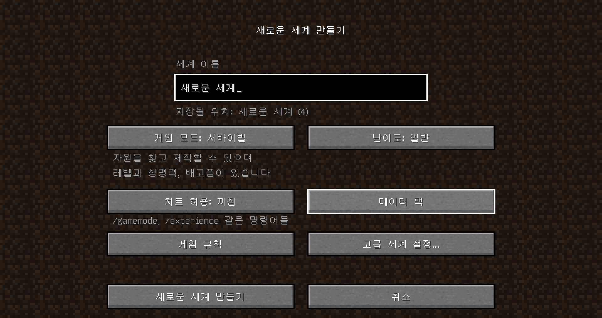 - 이러한 기능은 세계를 생성할 때 내장 데이터팩을 추가하여 활성화됩니다.
