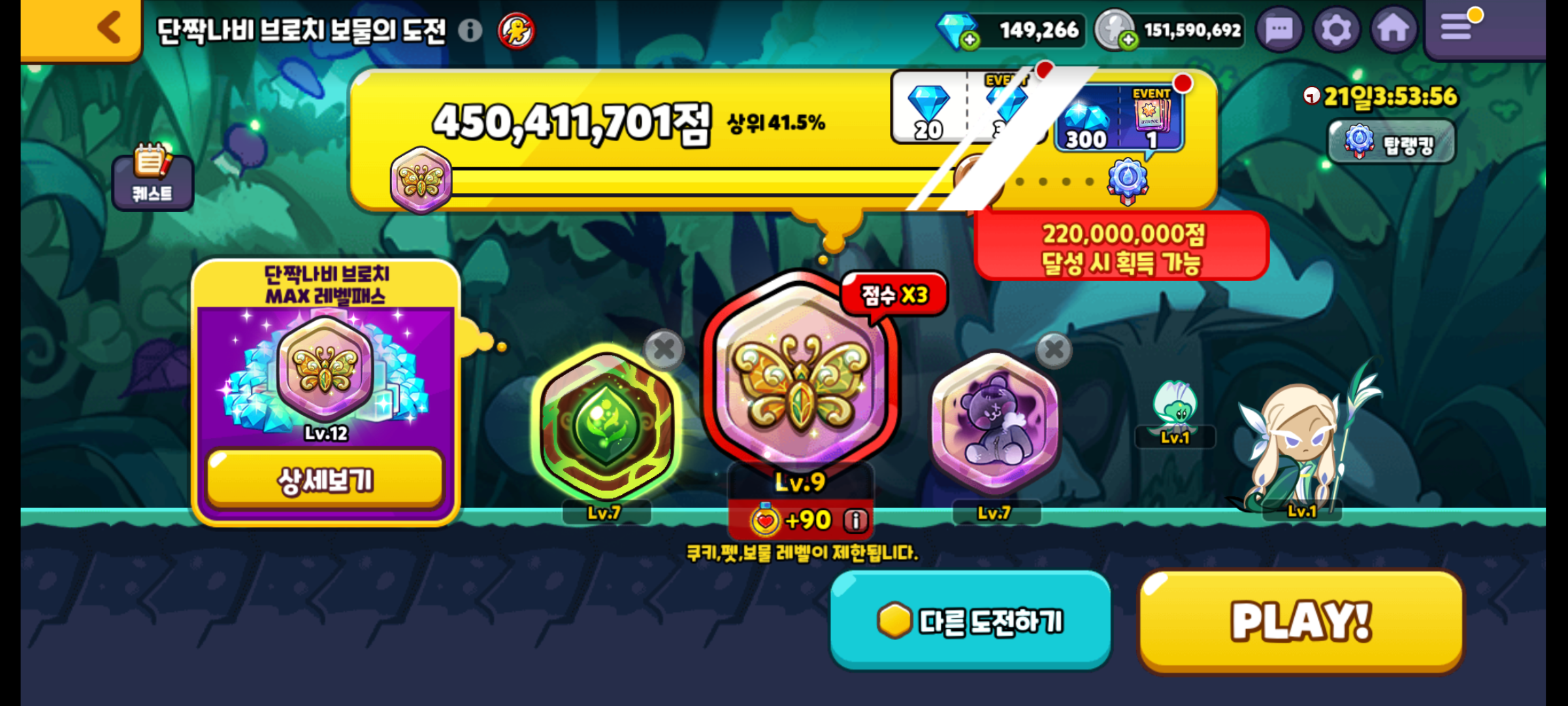 쿠키런 오븐브레이크 단짝나비 브로치 보물의 도전