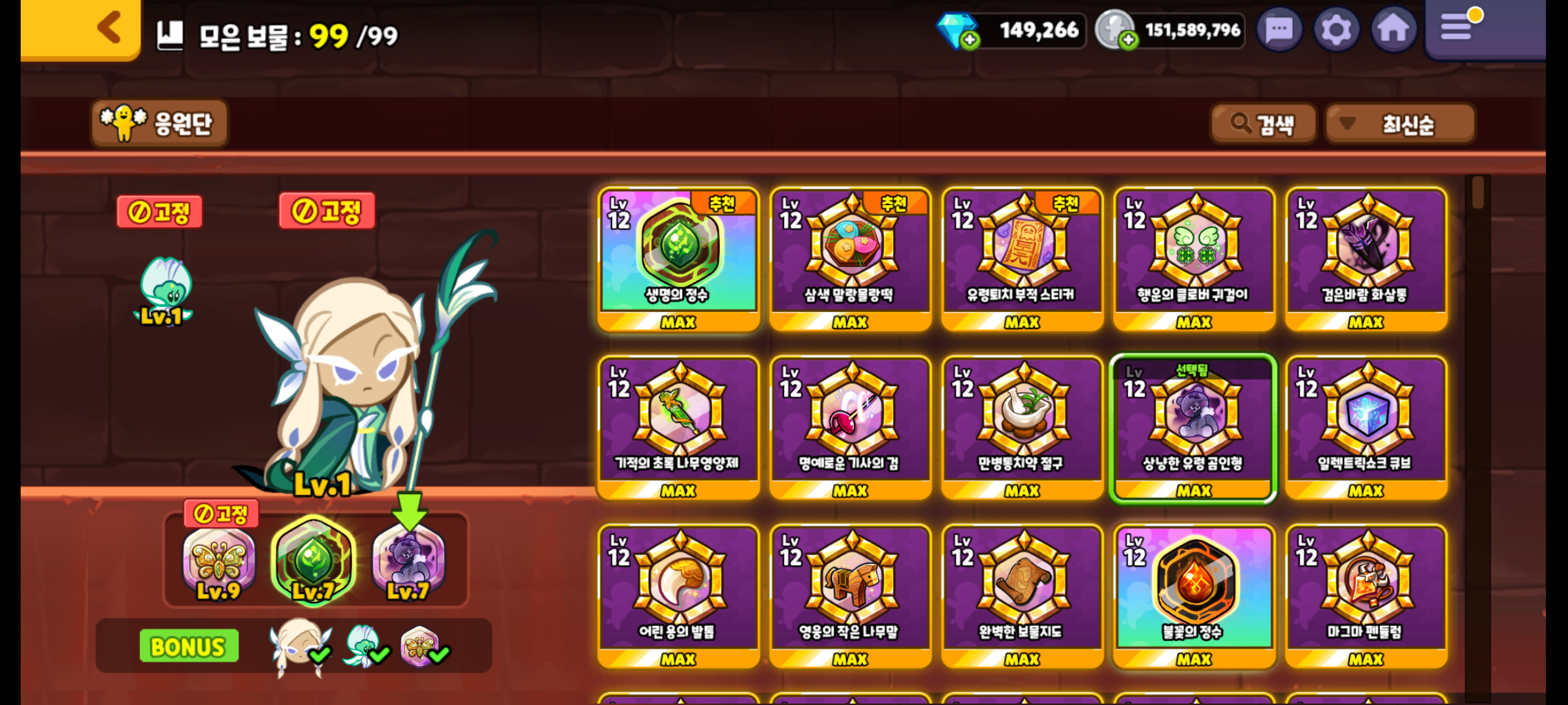 보물은 생명의 정수, 상냥한 유령 곰인형 보물을 장착하였습니다.