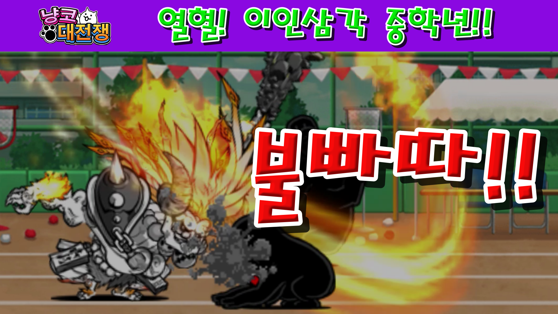 냥코대전쟁 열혈! 이인삼각 중학년 VS 백팀, VS 홍팀, VS 흑팀