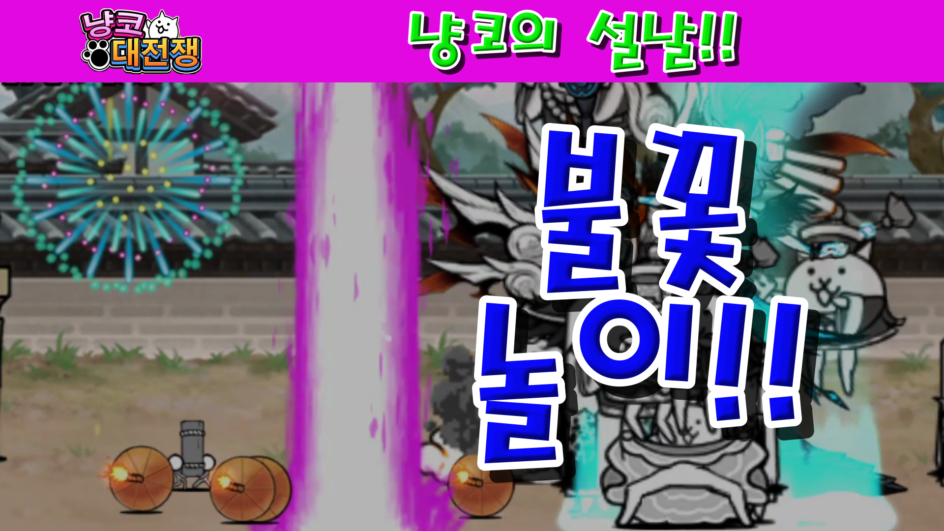 냥코대전쟁 한판 1월 16일 ~ 2월 1일 일정 목차 1. 베너 2. 뽑기 3. 이벤트 4. 출석 보상 5. 판매 6. 마무리 아래 일정은 예고 없이 변경될 수 있습니다! 1. 베너 설날 이벤트 뽑기 베너 울트라 인기 축제