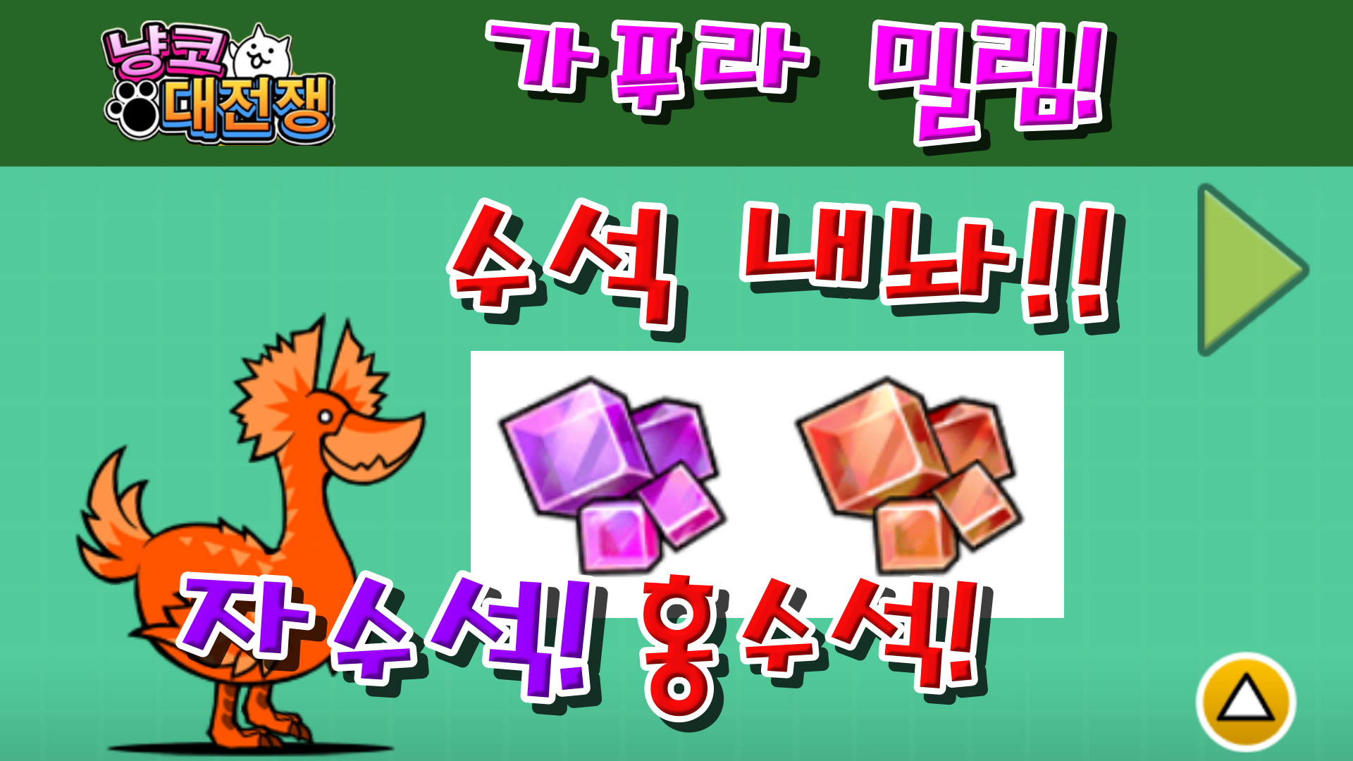 냥코대전쟁 가푸라 밀림 고온 밀림 지역 5~7 목차 1. 플레이 영상 2. 인사말 3. 적 구성 4. 보상 5. 마무리 1. 플레이 영상 2. 인사말 안녕하세요 에쓰디드림입니다. 이번 시간에는 가푸라 밀림의 5번