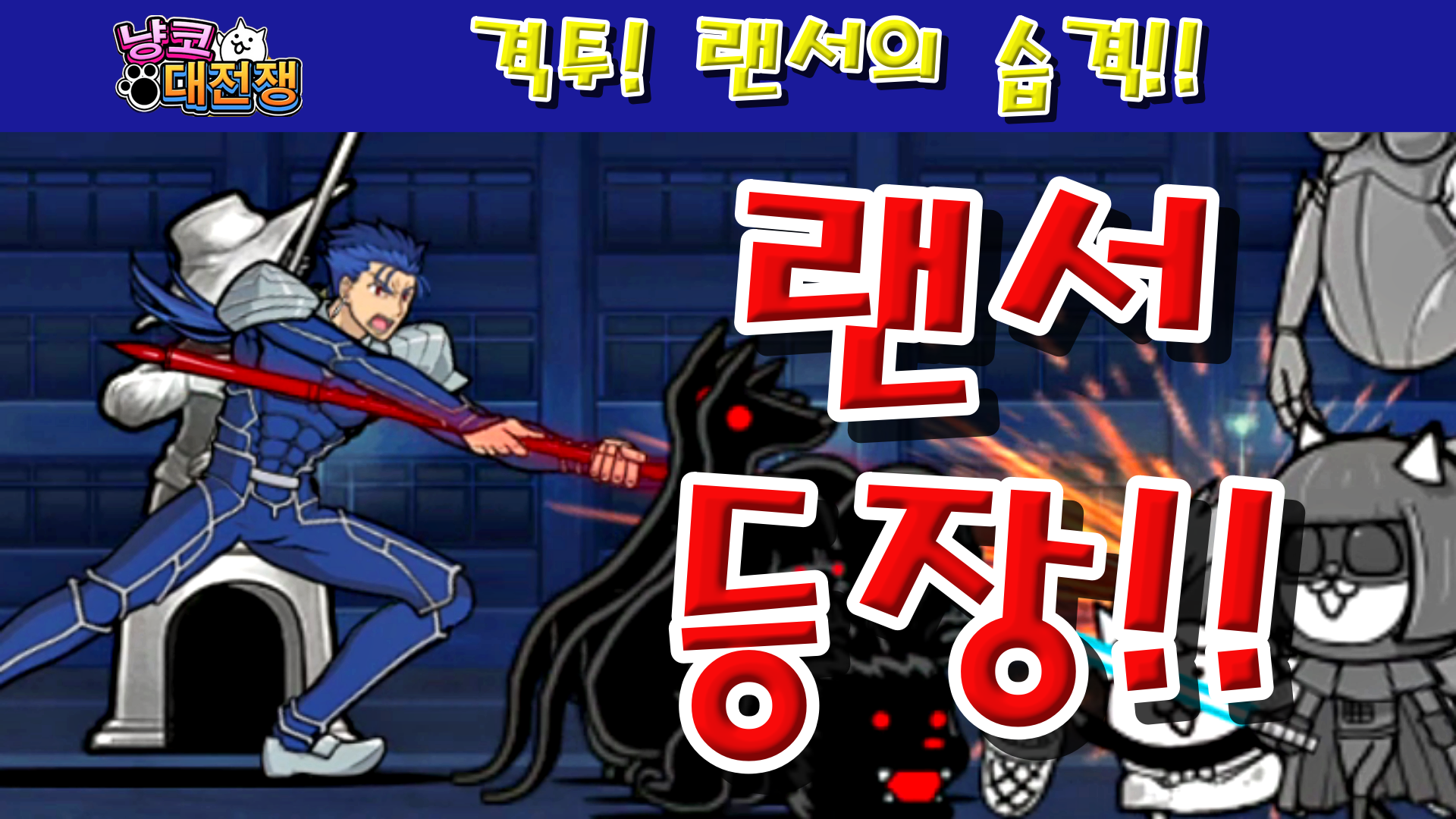 안녕하세요 에쓰디드림입니다. 이번에 냥코대전쟁에서 페이트와 콜라보를 개최하여 콜라보 스테이지 중 하나인 격투! 랜서의 습격!을 플레이해보도록 하겠습니다.