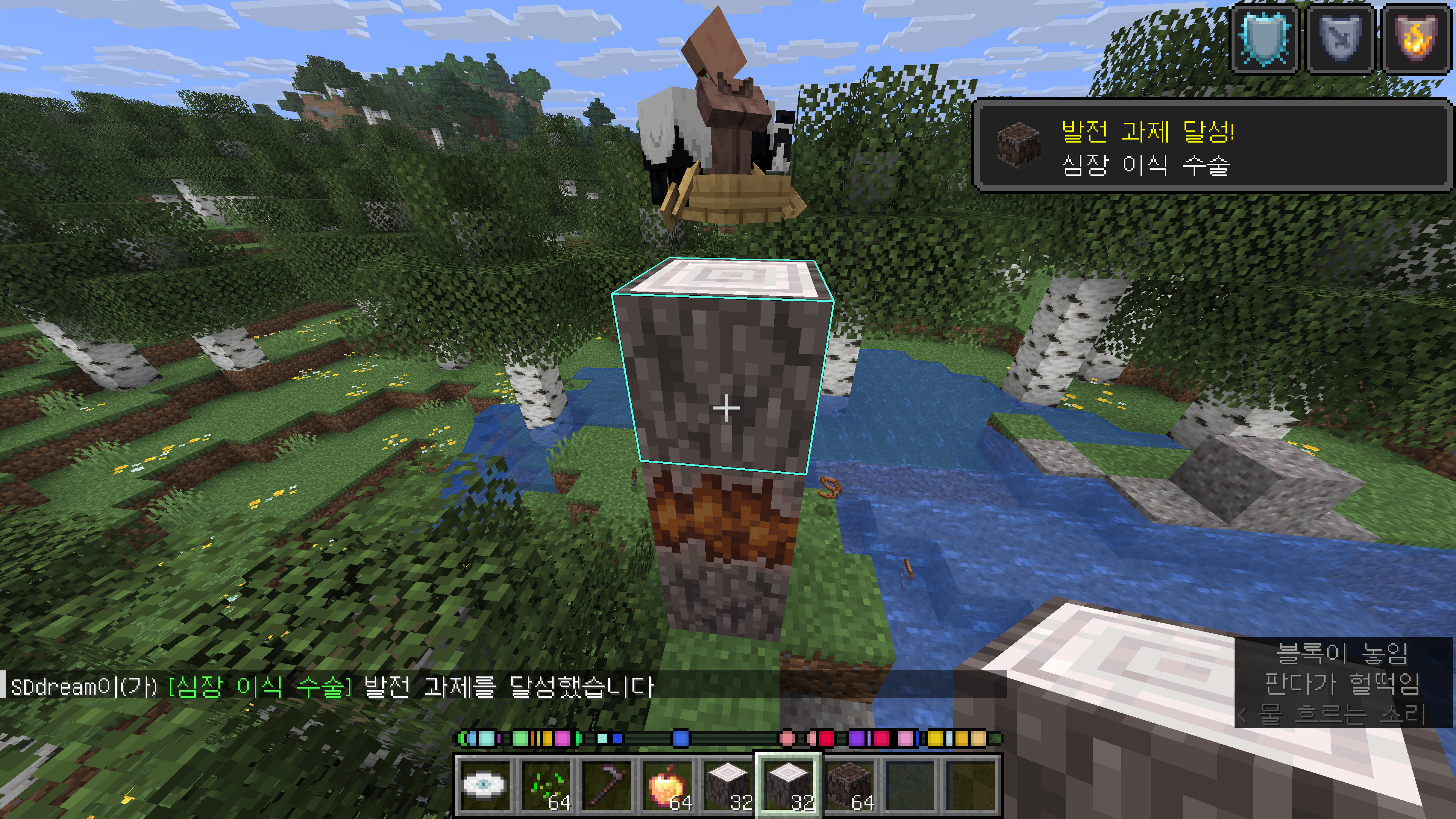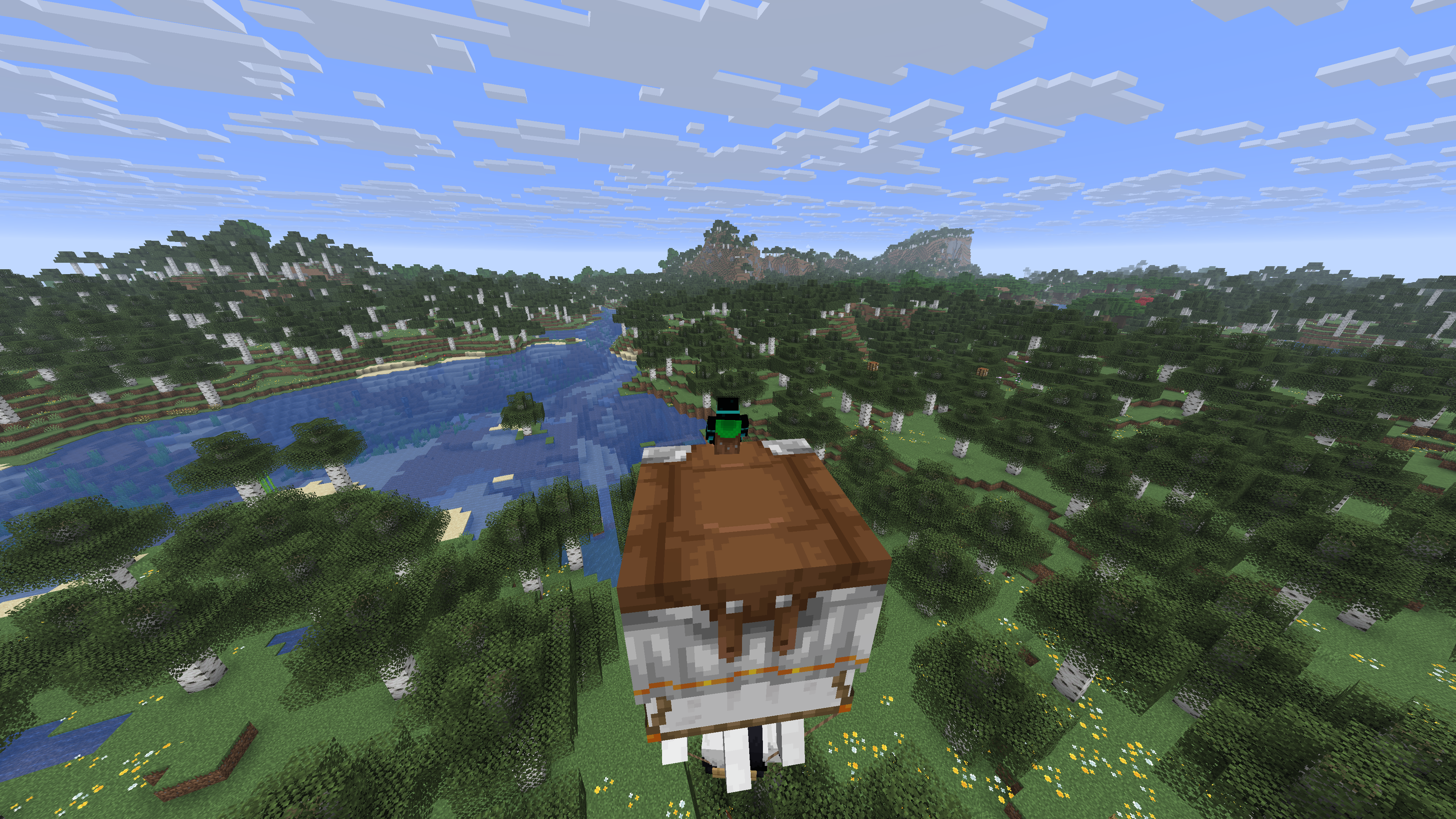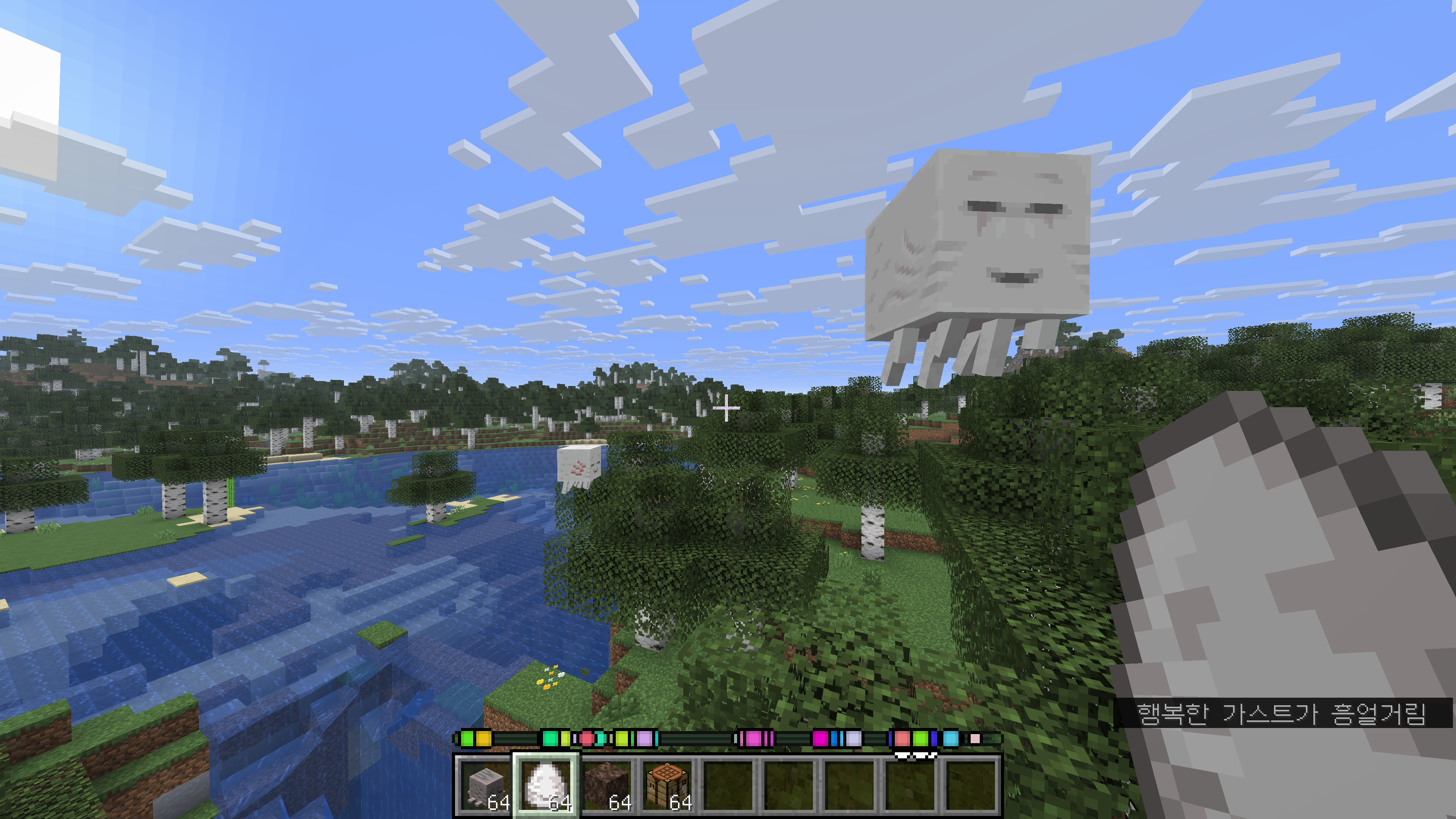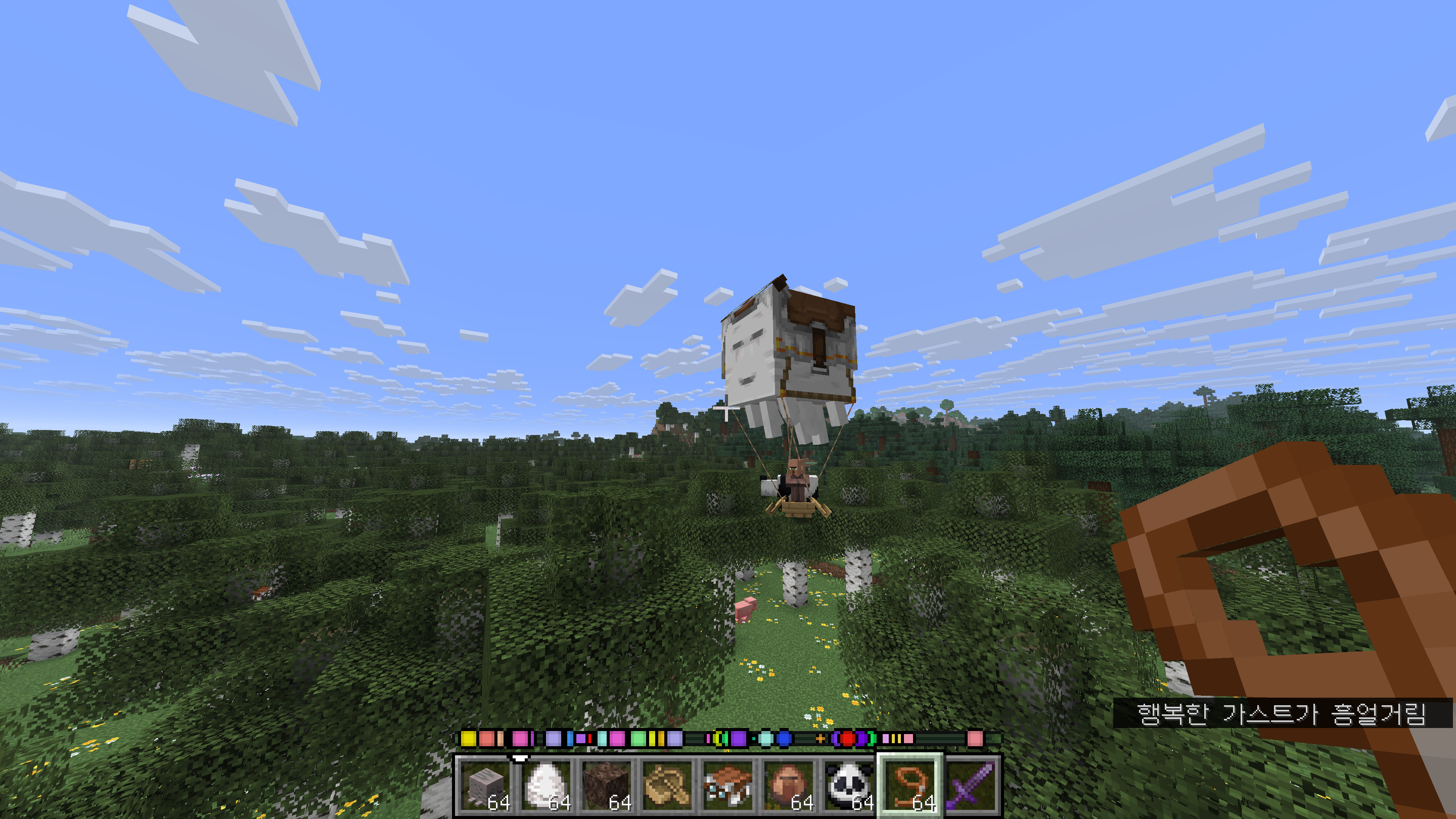 이 상태의 행복한 가스트도 당연히 탑승 가능합니다. 판다나 주민 같이 보트에는 탑승하는데 끈으론 직접 묶을 수 없는 몹을 옮길때 행복한 가스트를 이용하는 방법도 생겼네요.
