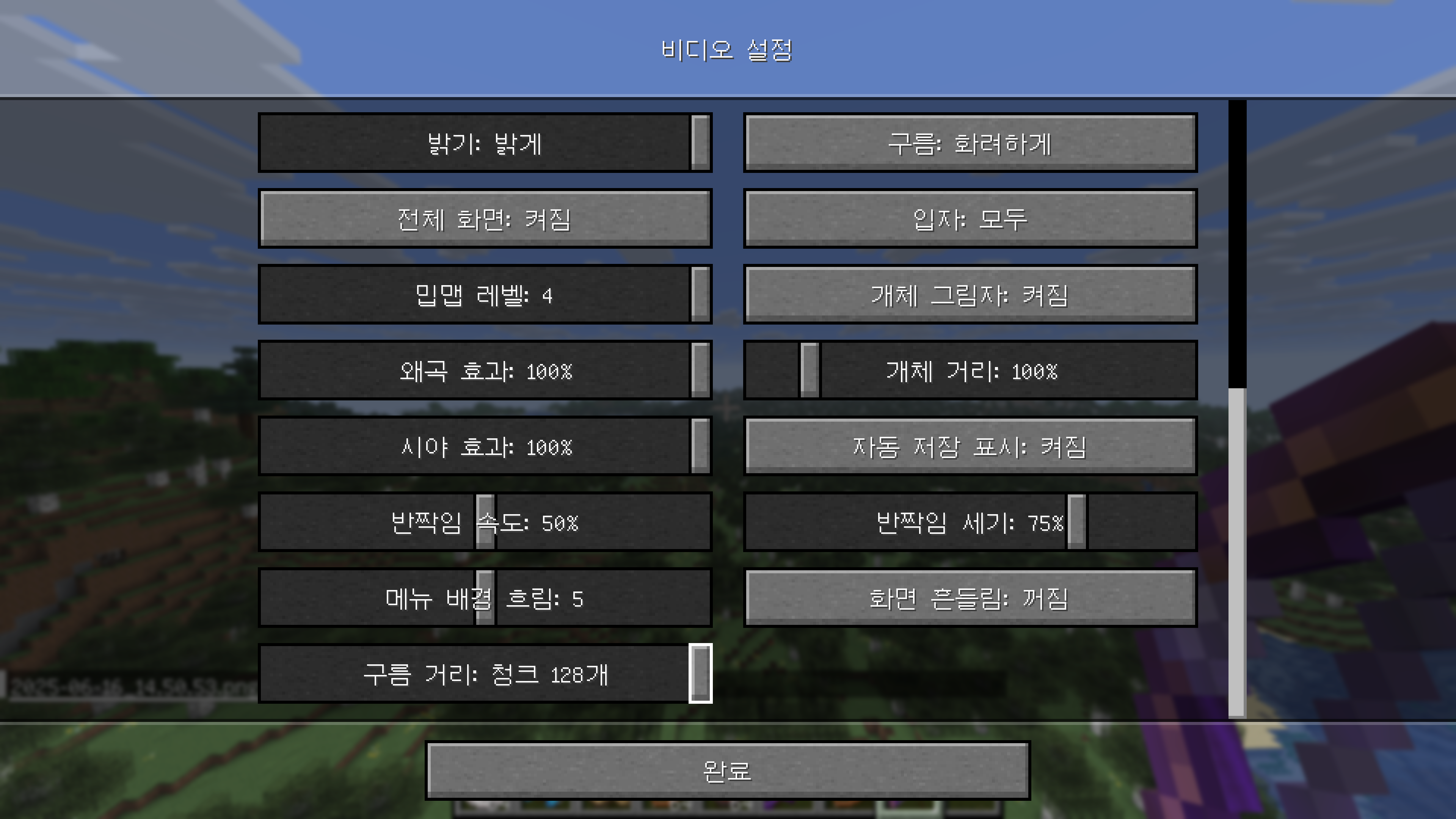 구림 거리를 결정짓는 옵션이 비디오 설정에 추가되었습니다. 최소 청크 2개에서 최대 청크 128개입니다.