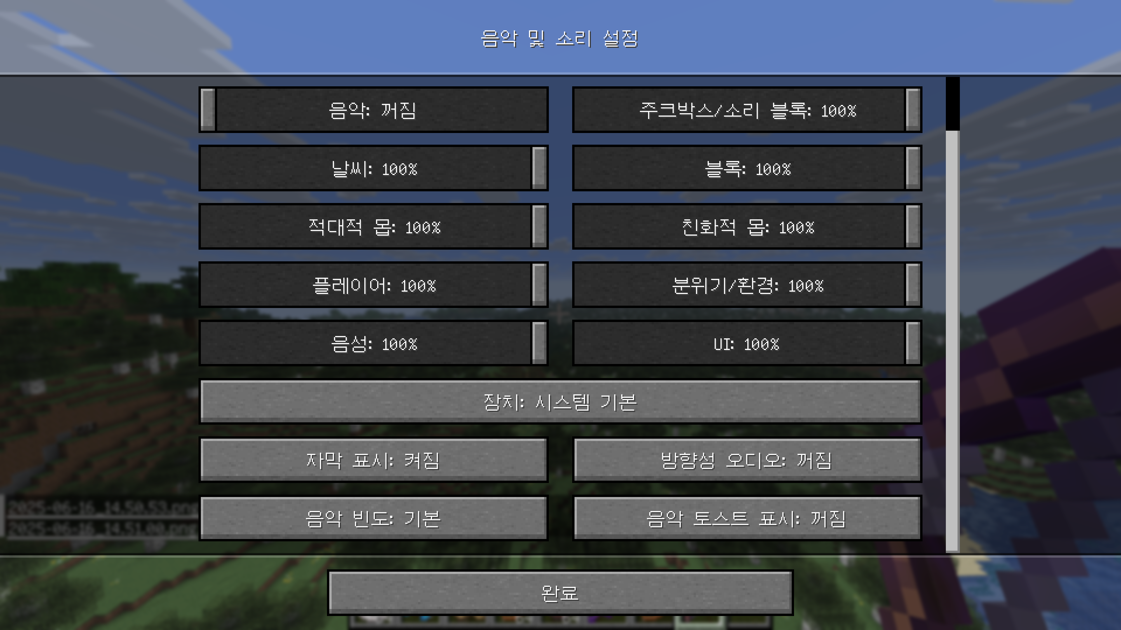 그리고 음악 및 소리 설정에 음악 빈도 옵션과 음악 토스트 표시 옵션이 생겼습니다. 음악 빈도는 배경음악이 재생되는 빈도를 결정짓는 옵션입니다.