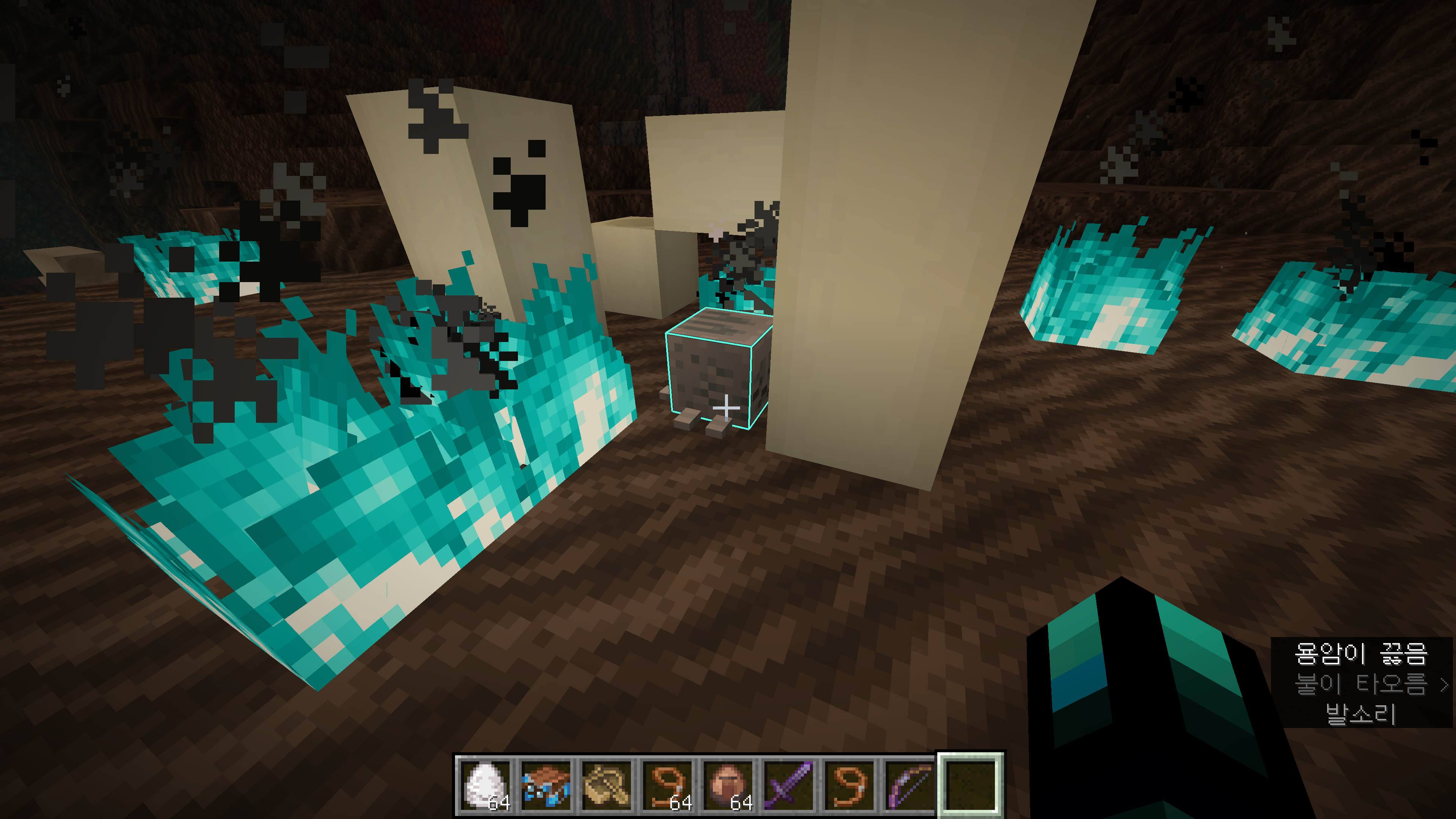 그리고 이번에 3월 마인콘에서 소개가 되었던 행복한 가스트가 추가되었는데요. 우선, 네더로 넘어와서 영혼 모래 골짜기를 찾아주신 다음 화석 주변에 생성되어 있는 마른 가스트를 찾으셔야 합니다.