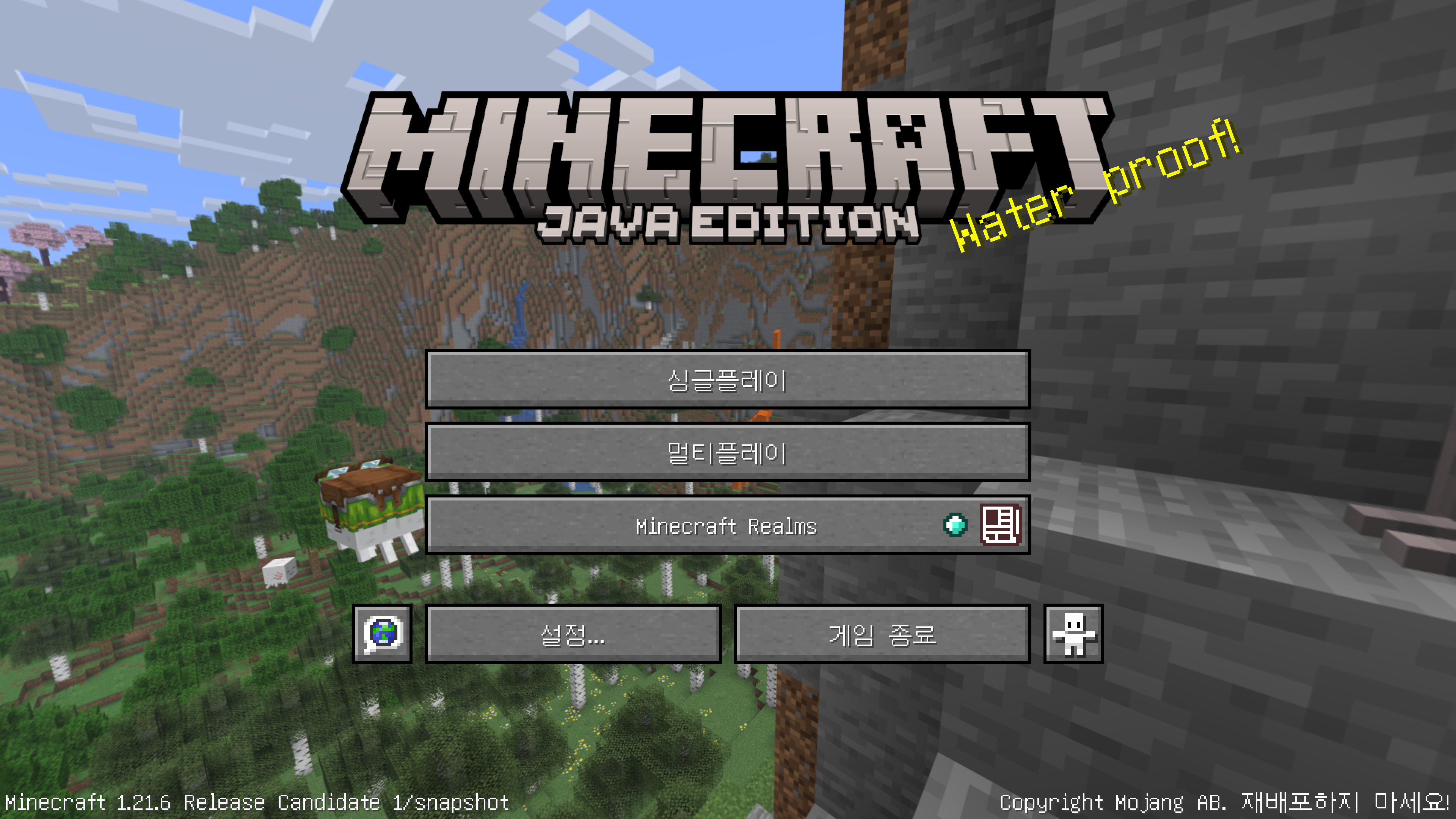 우선적으로 메인화면 파노라마가 1.21.6에 맞춰 바뀌었습니다. 행복한 가스트와 마른 가스트 등이 보이는 모습입니다.