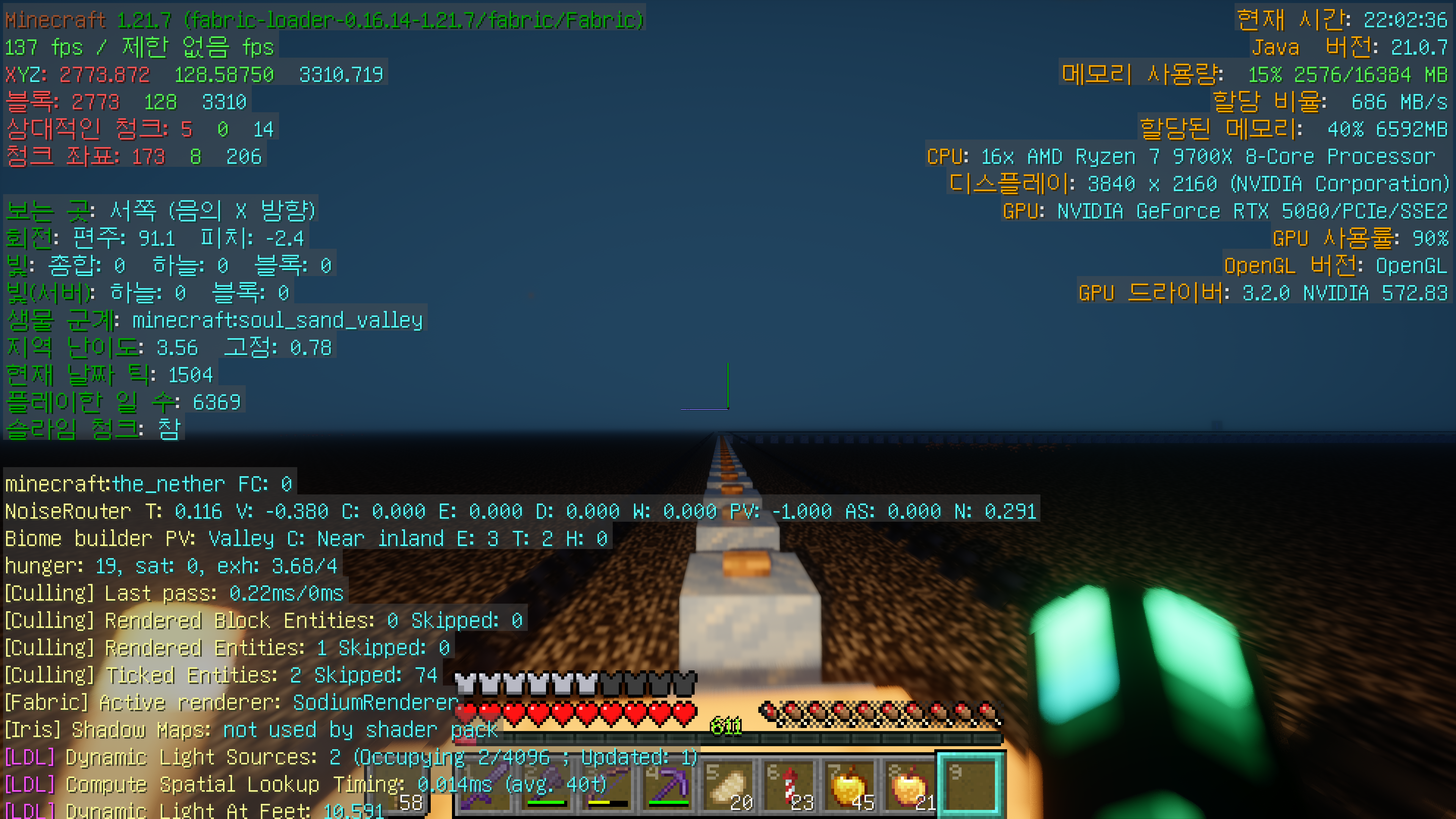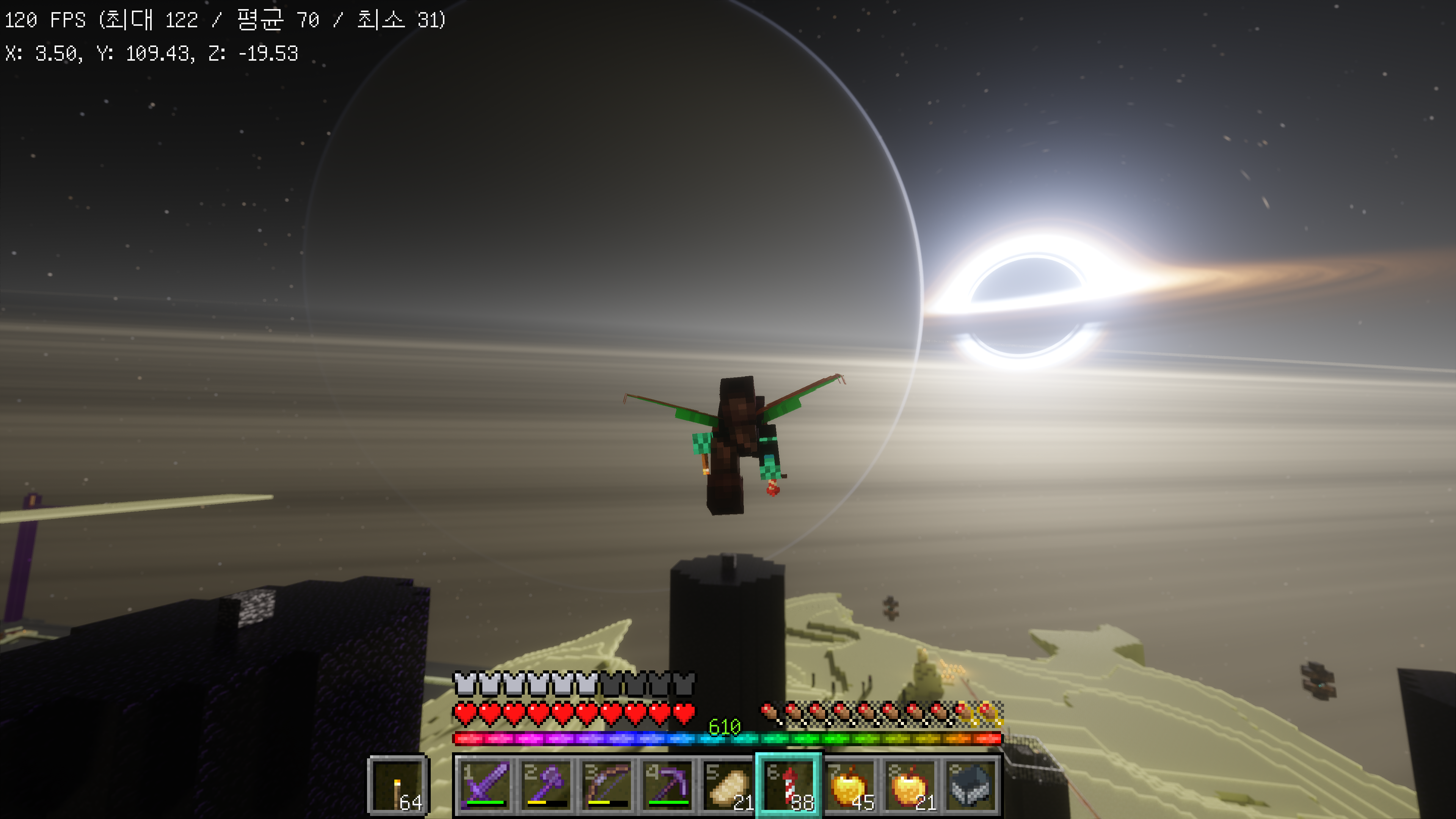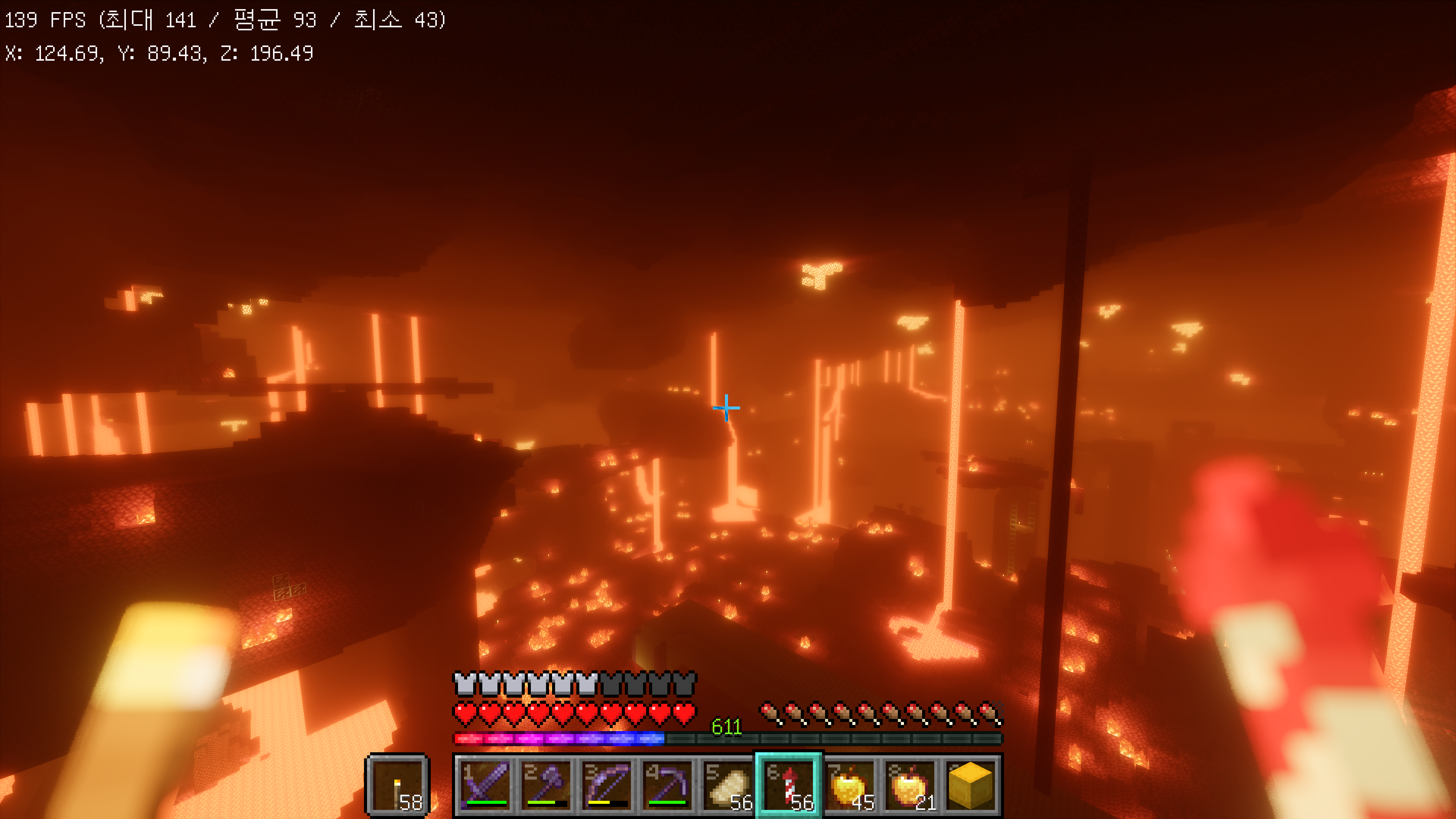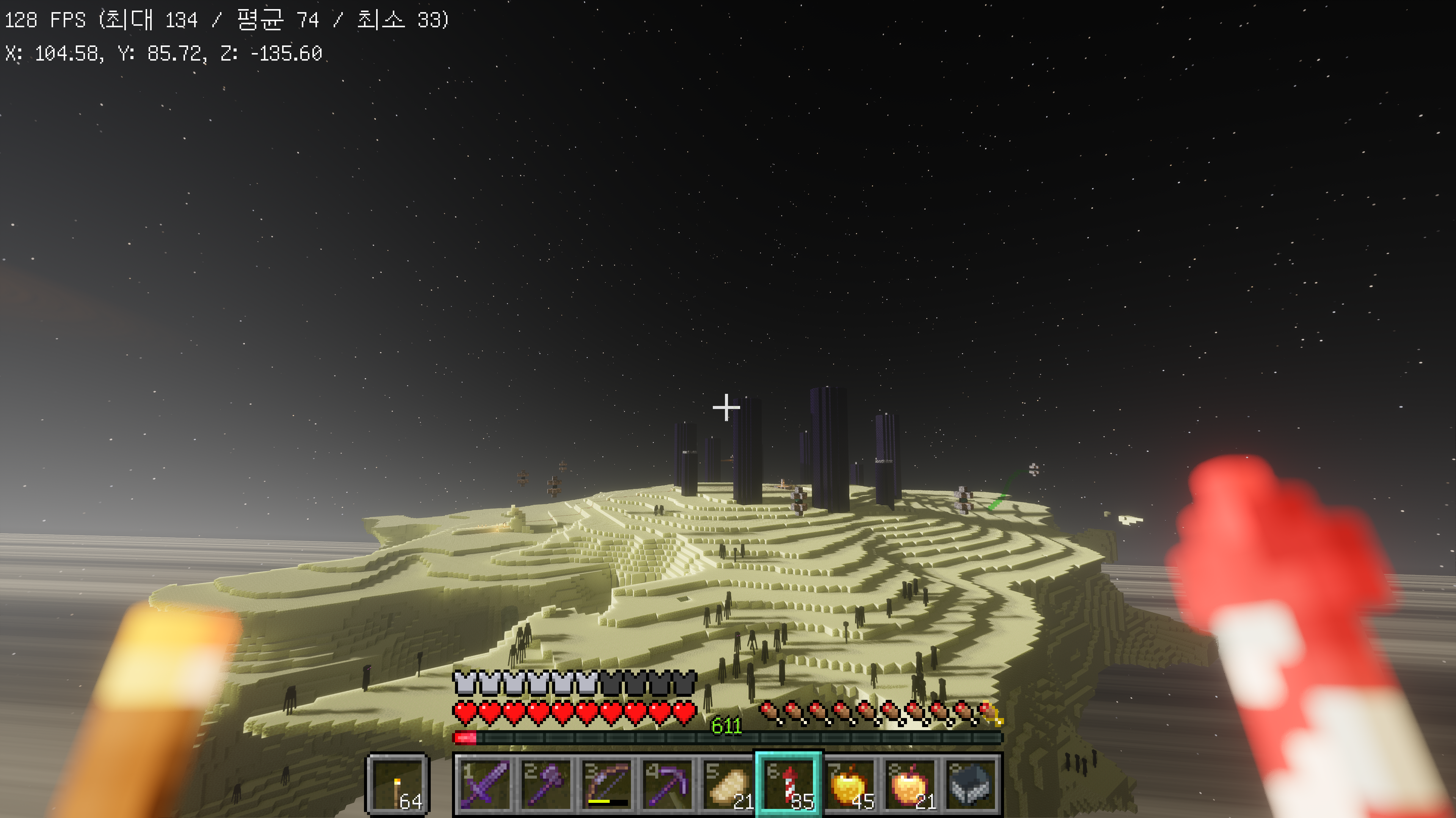 네더 생물군계에 따라 하늘색이 달라지는 것도 잘 구현이 되어 있습니다.