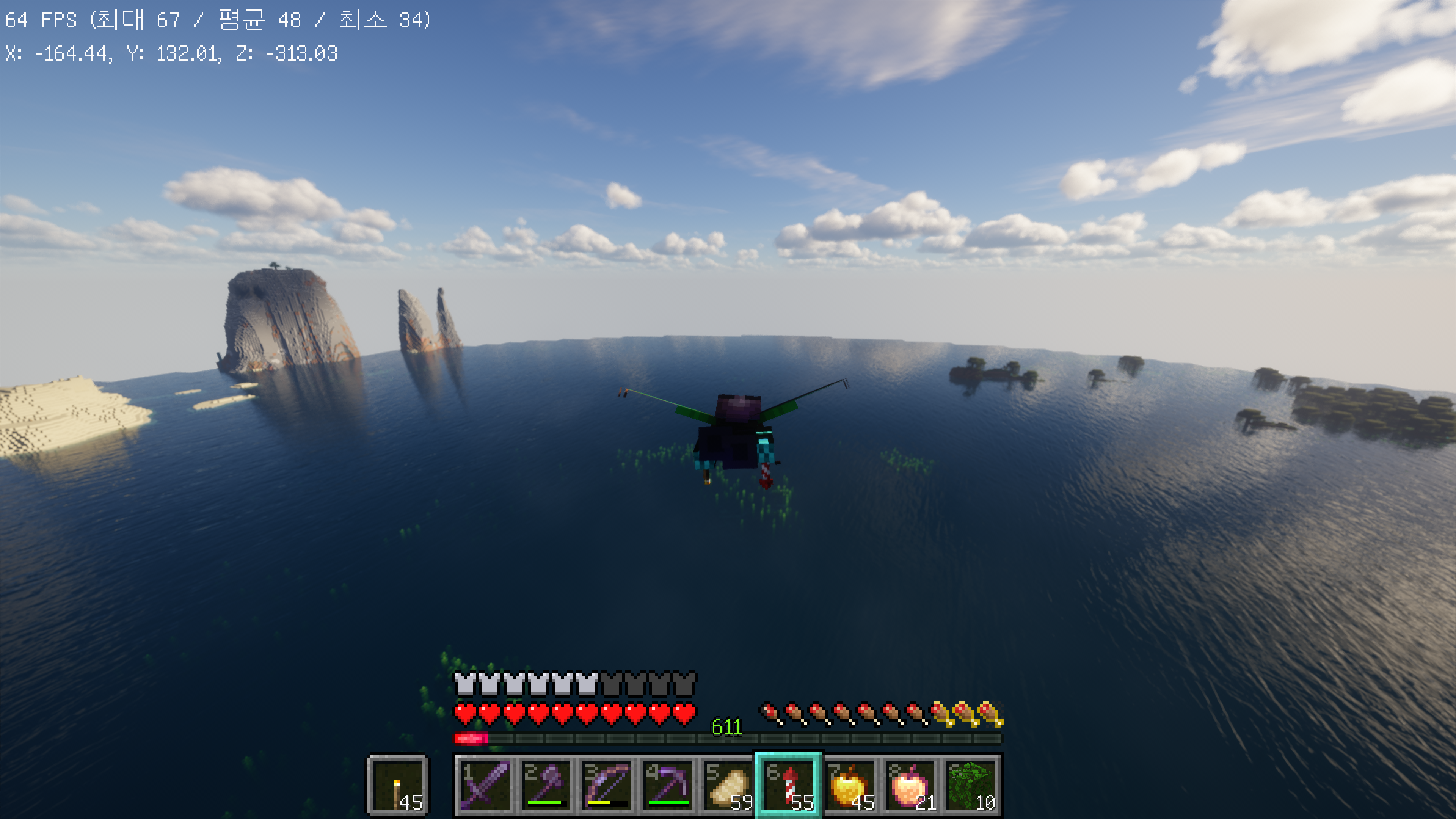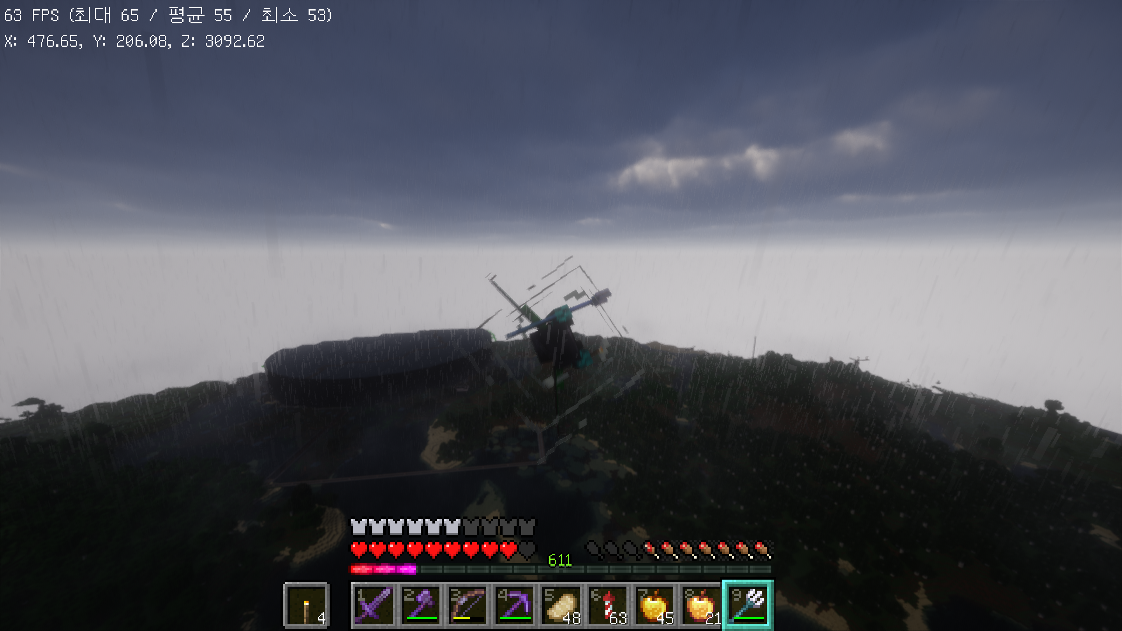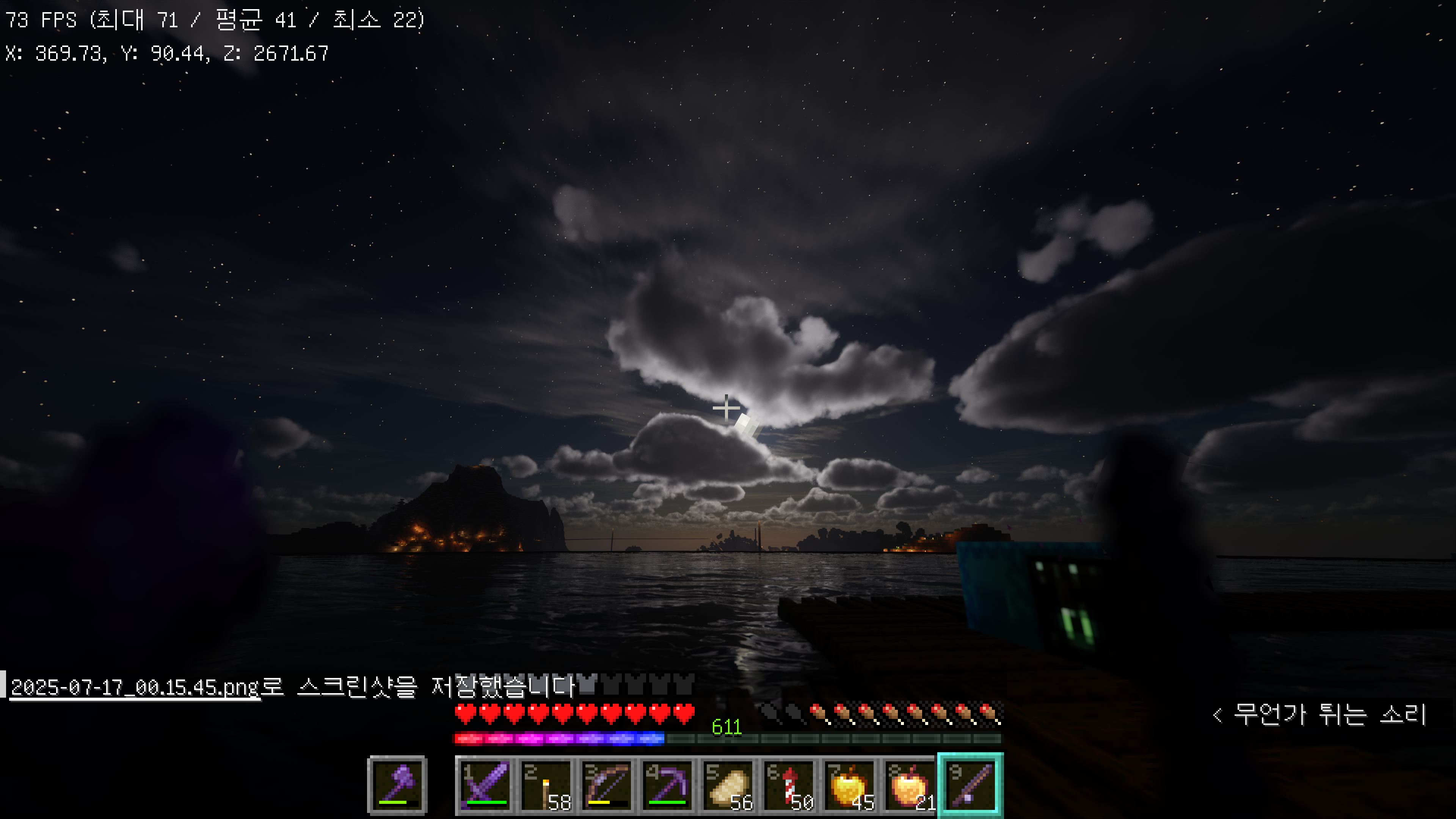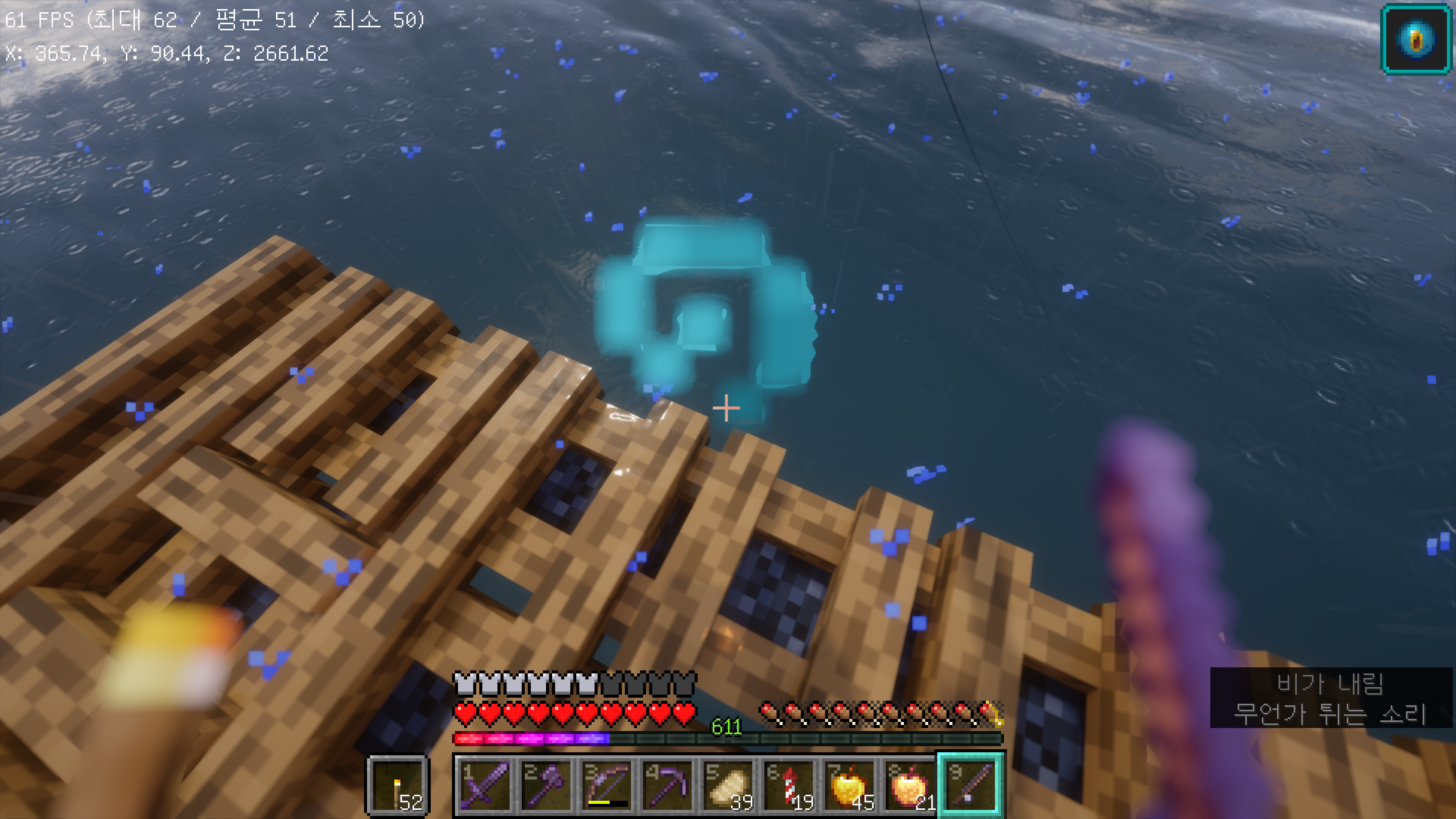 바다에서의 모습은 이렇습니다. 지금까지 확인한 바로는 SEUS 쉐이더와 퀄리티가 비슷한 것 같습니다. 무거운 것도 똑같구요.
