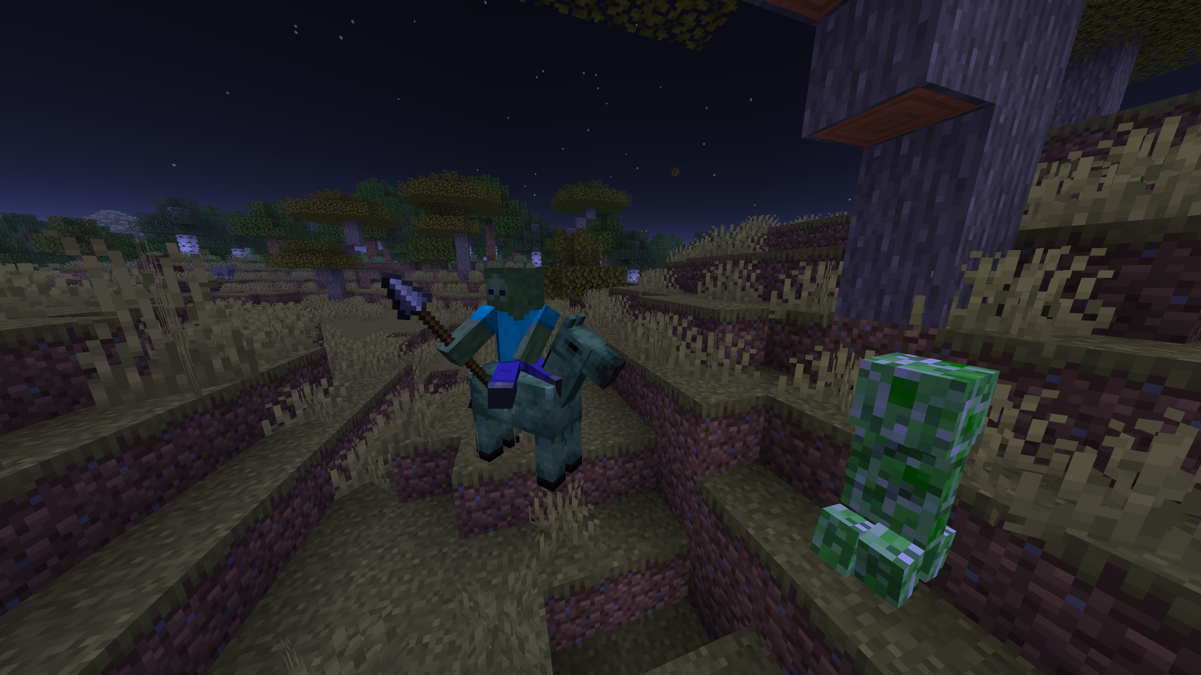 - 좀비 말은 적대적인 몹 상한선에 포함되며 다른 적대적인 몹과 함께 생성됩니다.