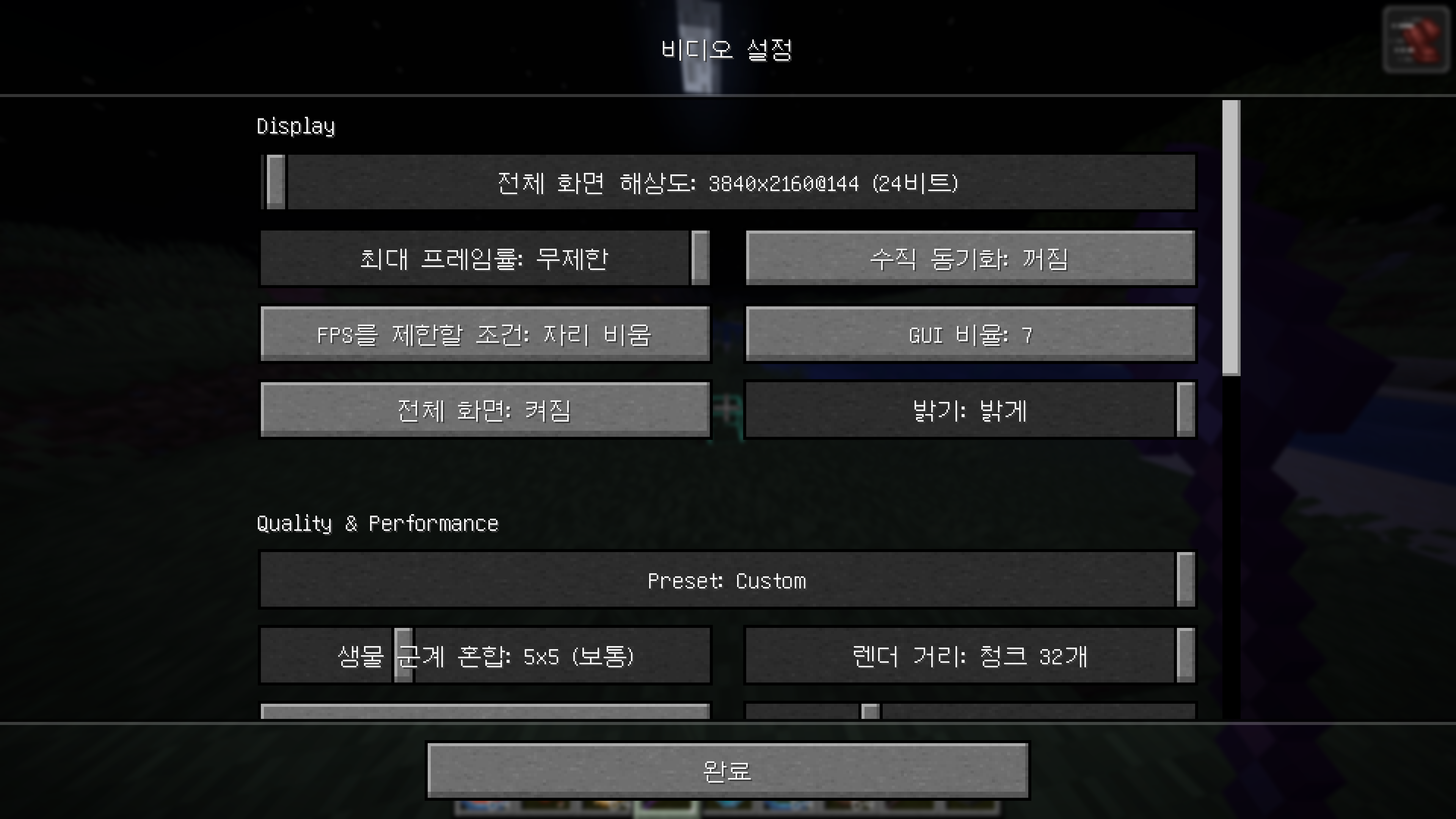 그리고 이번에도 선명한 비주얼이 자바에 들어오지는 않았는데 이번에도 그래픽 설정 관련해서 개선이 이루어졌습니다. 선명한 비주얼을 위한 준비는 계속 하고는 있는 것 같습니다.