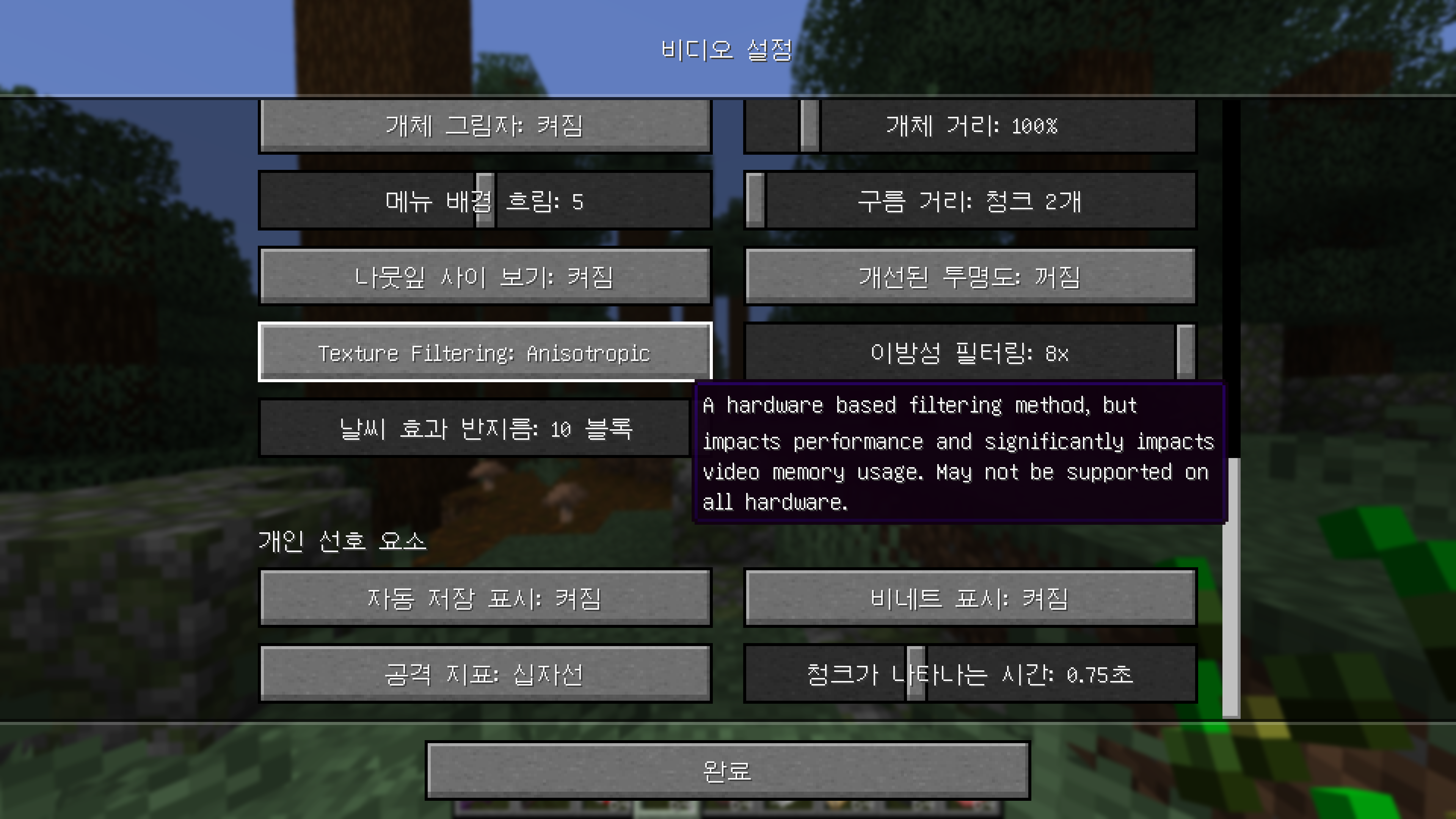 - 새로운 그래픽 옵션 "텍스처 필터링"이 추가되었습니다.