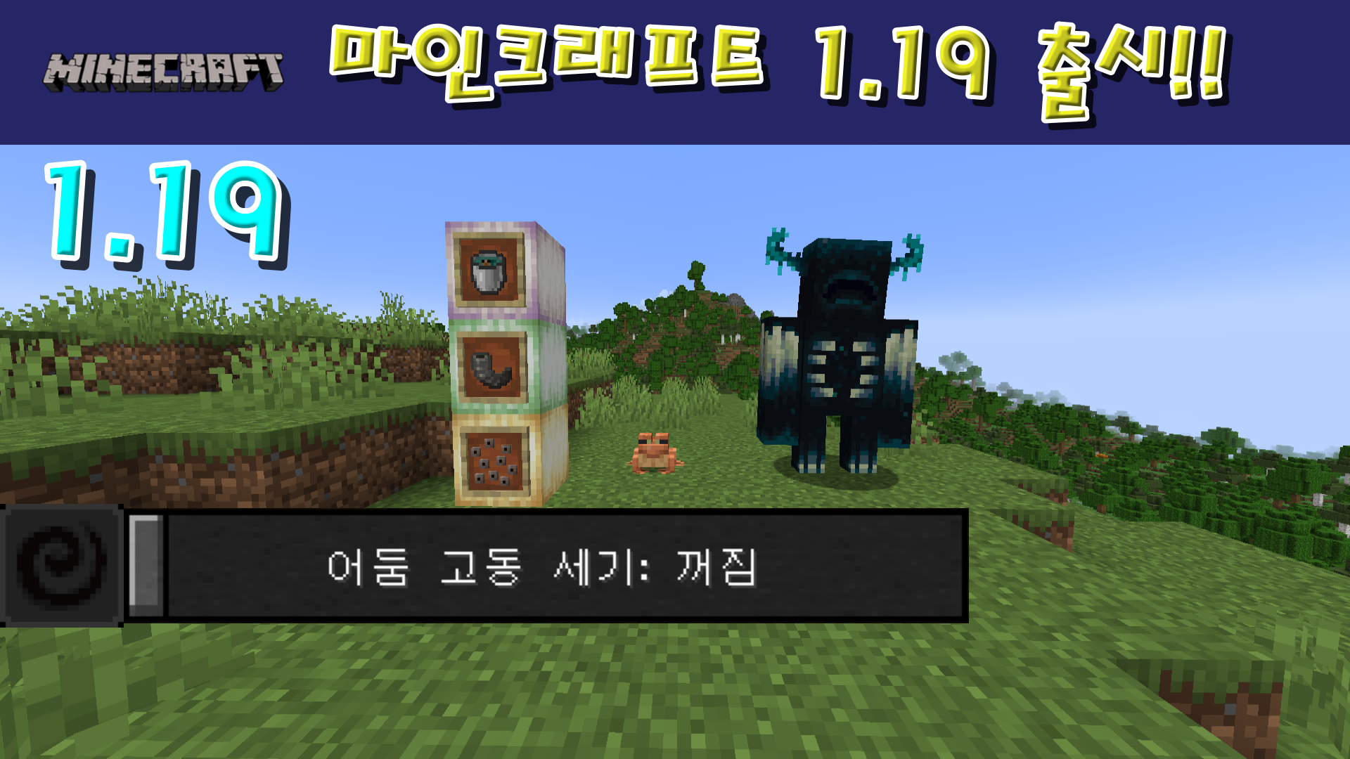 오늘 이렇게 1.19 업데이트에서 개구리와 워든, 염소뿔에 대해서 리뷰해보는 시간을 가져봤습니다.