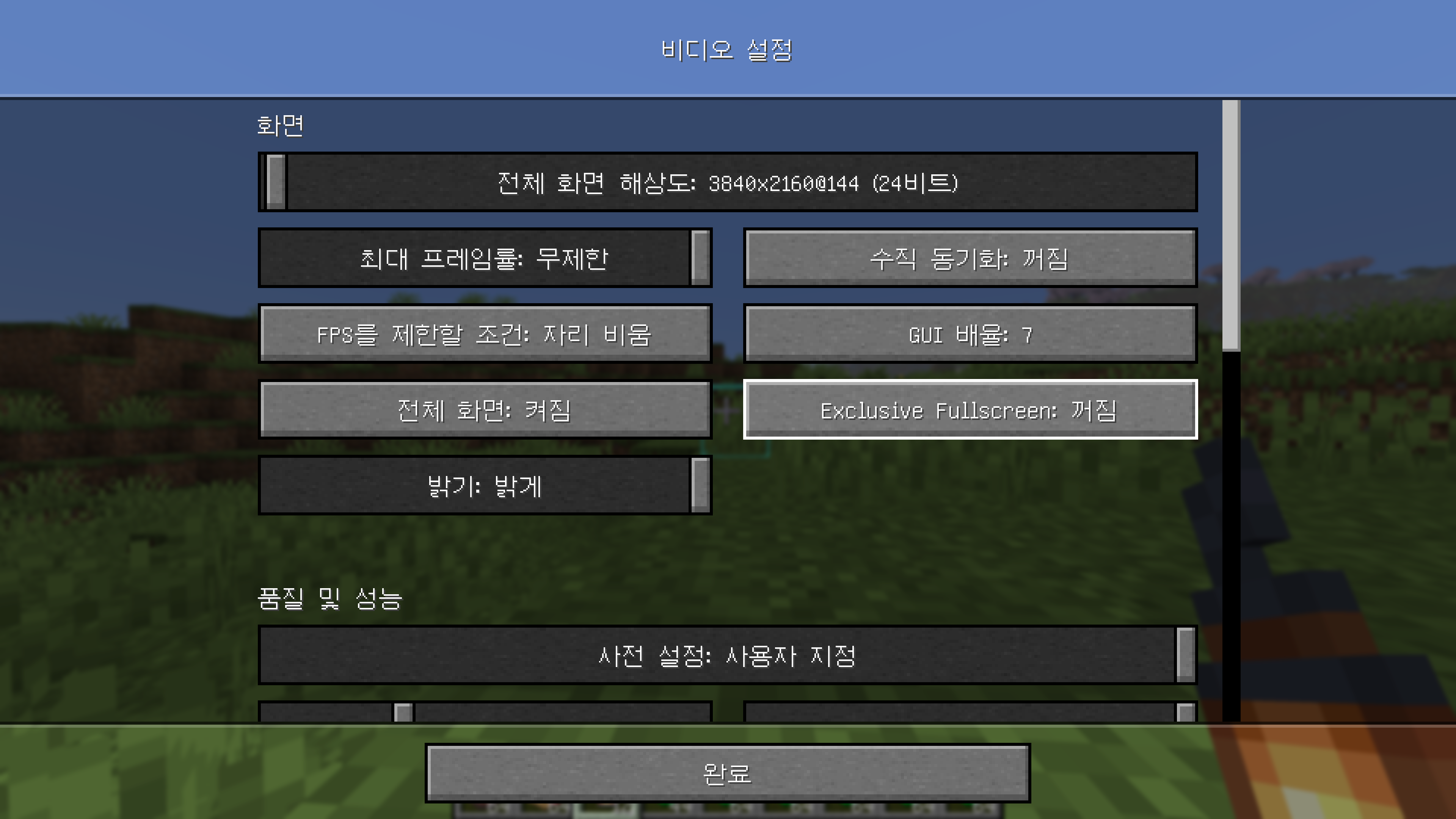 일단 이번 버전으로 독점 전체 화면모드를 사용자가 직접 활성화 하거나 비활성화 시킬 수 있게 바뀌었습니다.