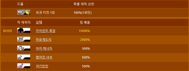 | 자이언트 블랙 빠옹 강습 보상 목록 | |
