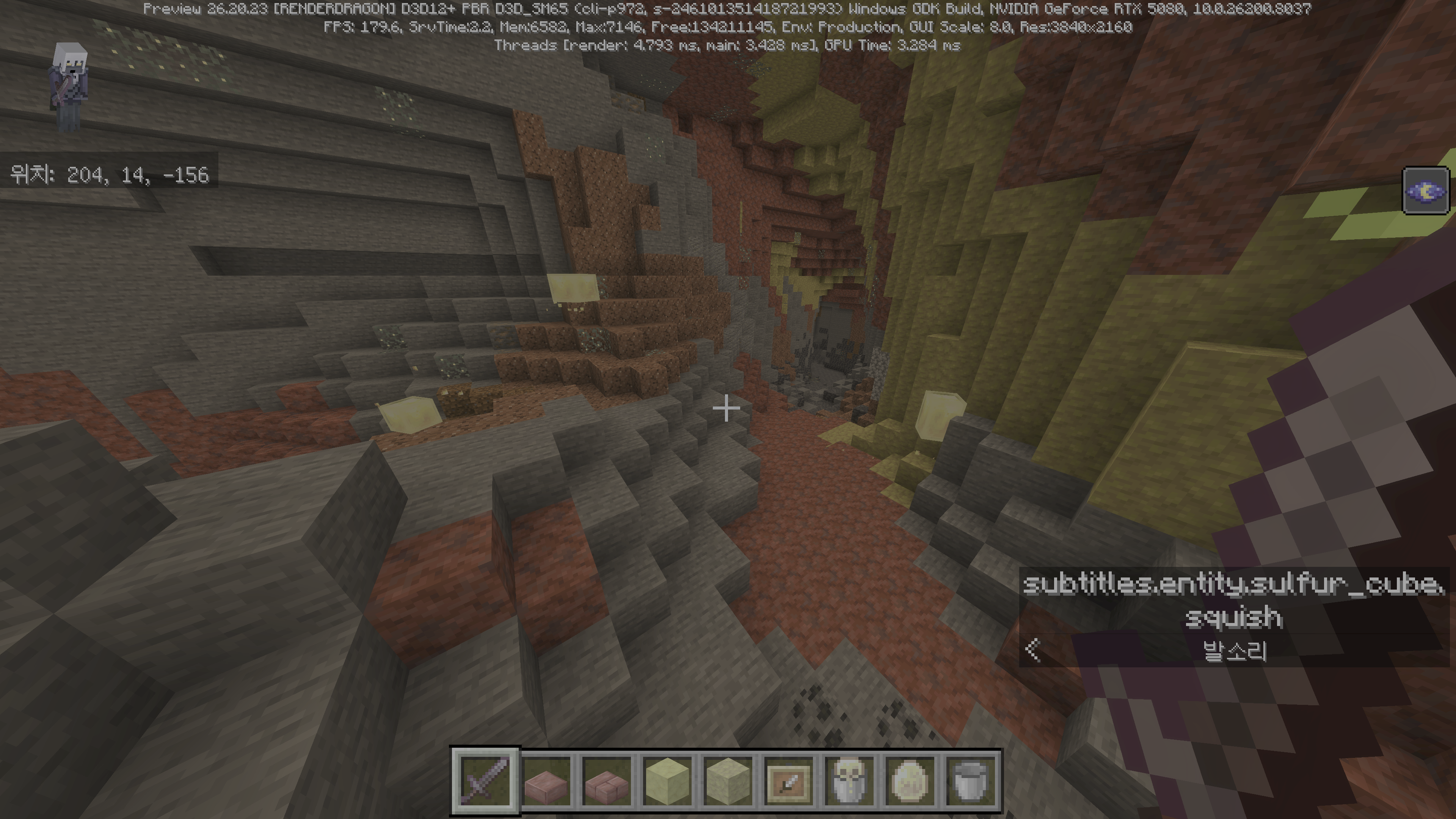 오늘 이렇게 베드락에디션 베타/프리뷰 26.20.23 버전에서 유황 동굴 관련 컨텐츠들 살펴보는 시간 가져봤습니다.