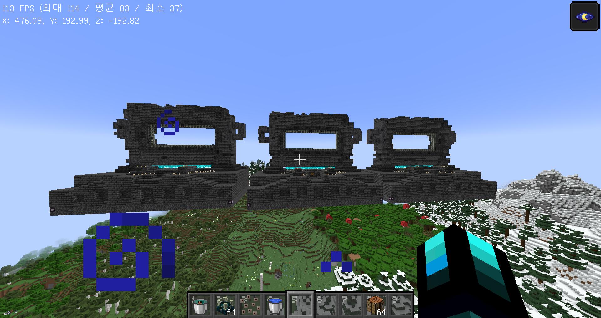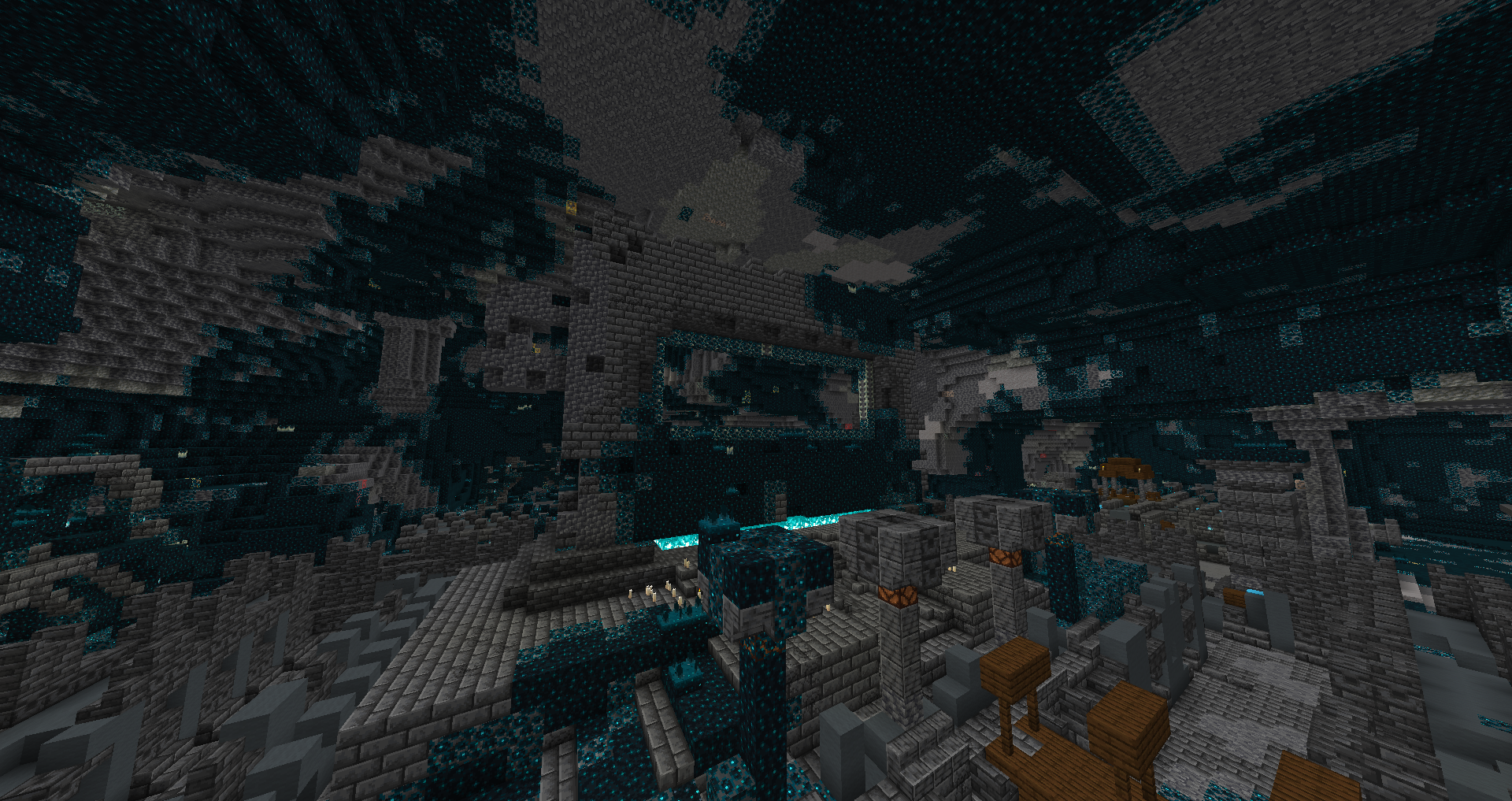 위와 같이 고대 도시가 추가되었습니다. 고대 도시는 딥다크 바이옴에서 확률에 따라 생성이 되는 구조물입니다.