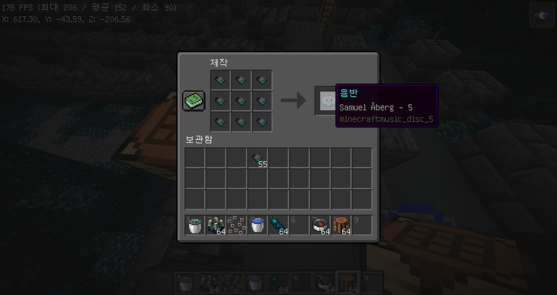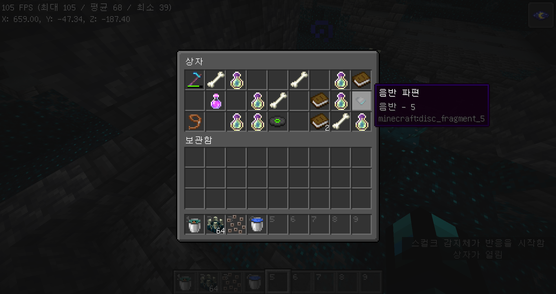 이 상태에서 아이템을 주우면 플레이어가 아닌 소리 블록에 아이템을 떨어뜨리게 됩니다.