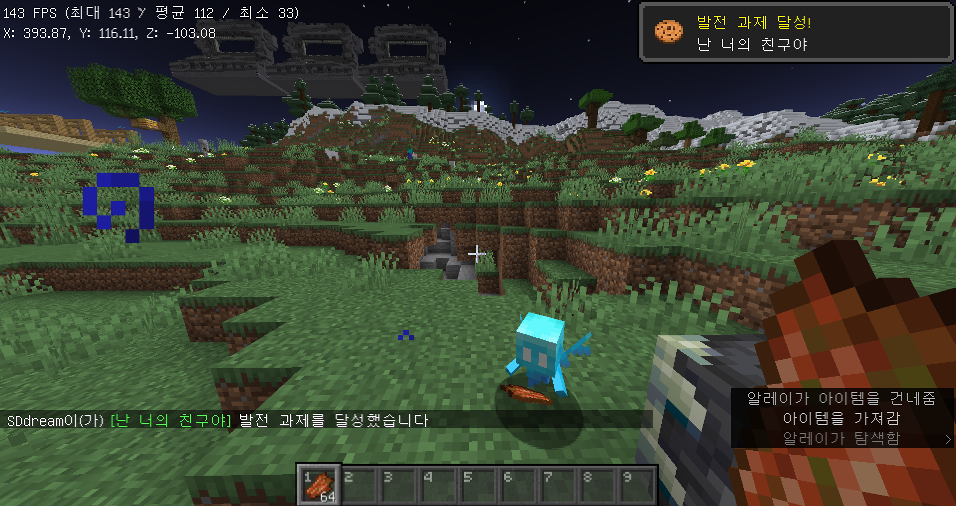 알레이가 플레이어에게 아이템을 주게하면 난 너의 친구야 발전과제를 달성하실 수 있습니다.