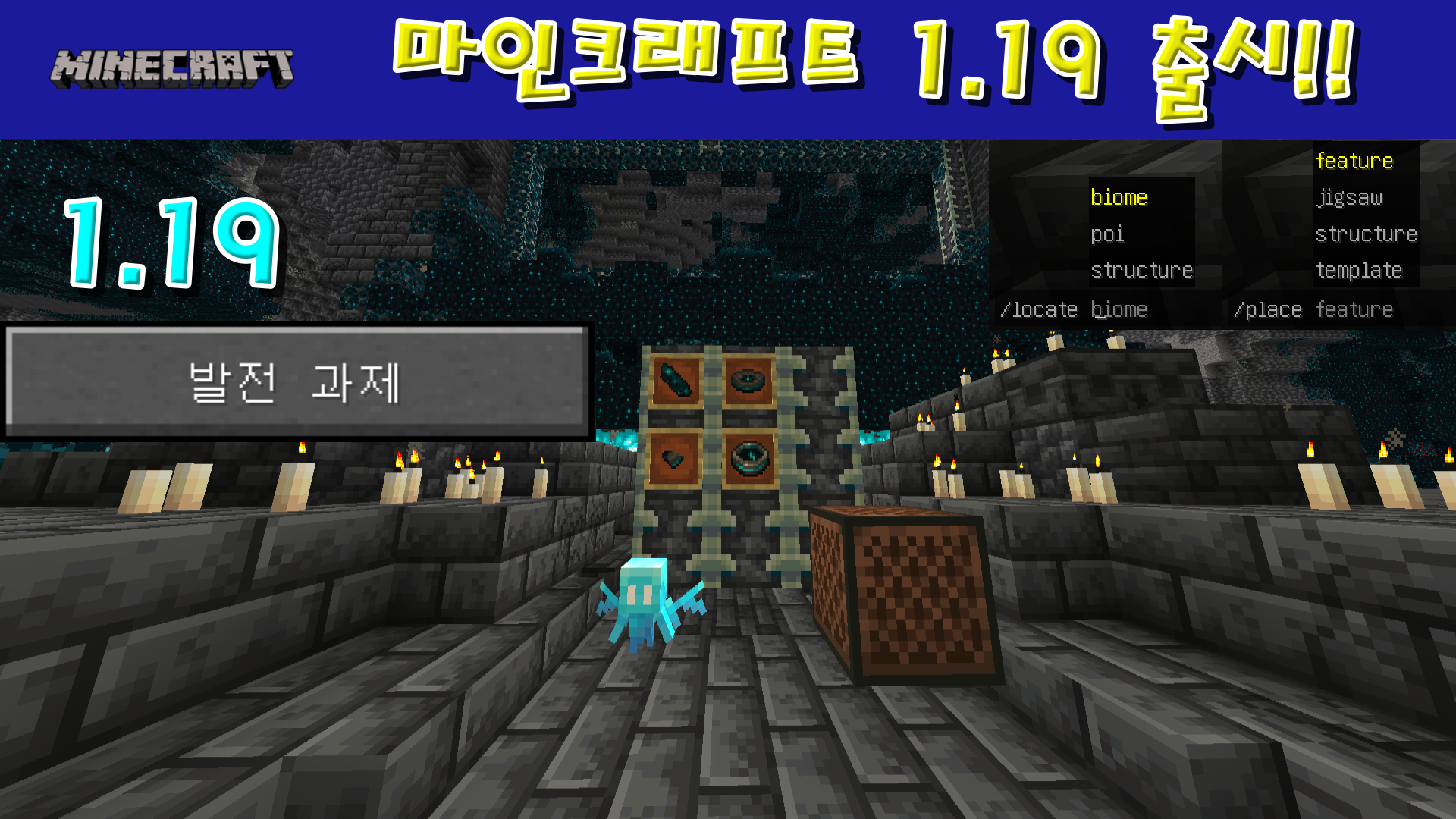 오늘 이렇게 마인크래프트 1.19 업데이트에서 고대 도시와 거기서 나오는 전리품, 고대 도시 중심부의 비밀공간과 알레이, 새로운 명령어와 발전과제에 대해 확인해보고 리뷰해보는 시간을 가져봤습니다.