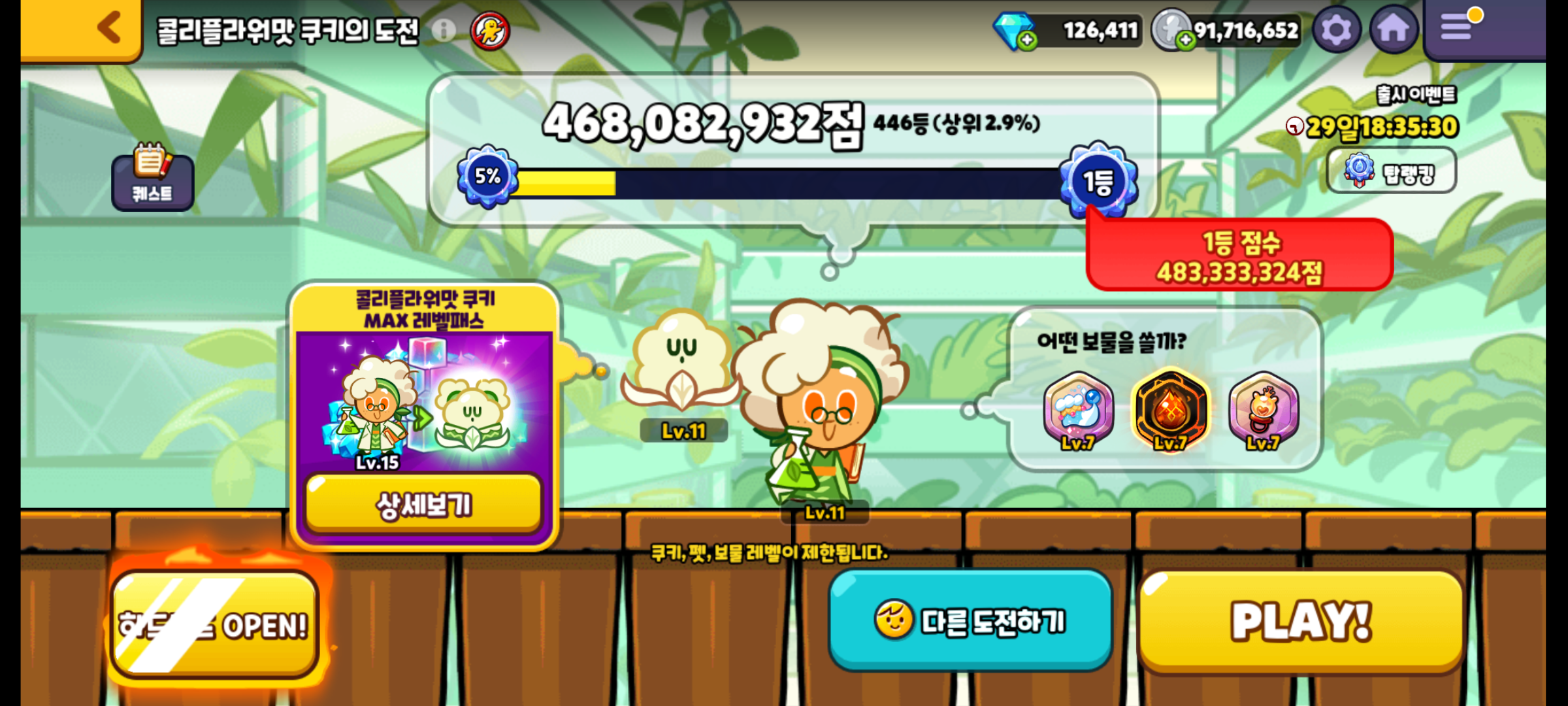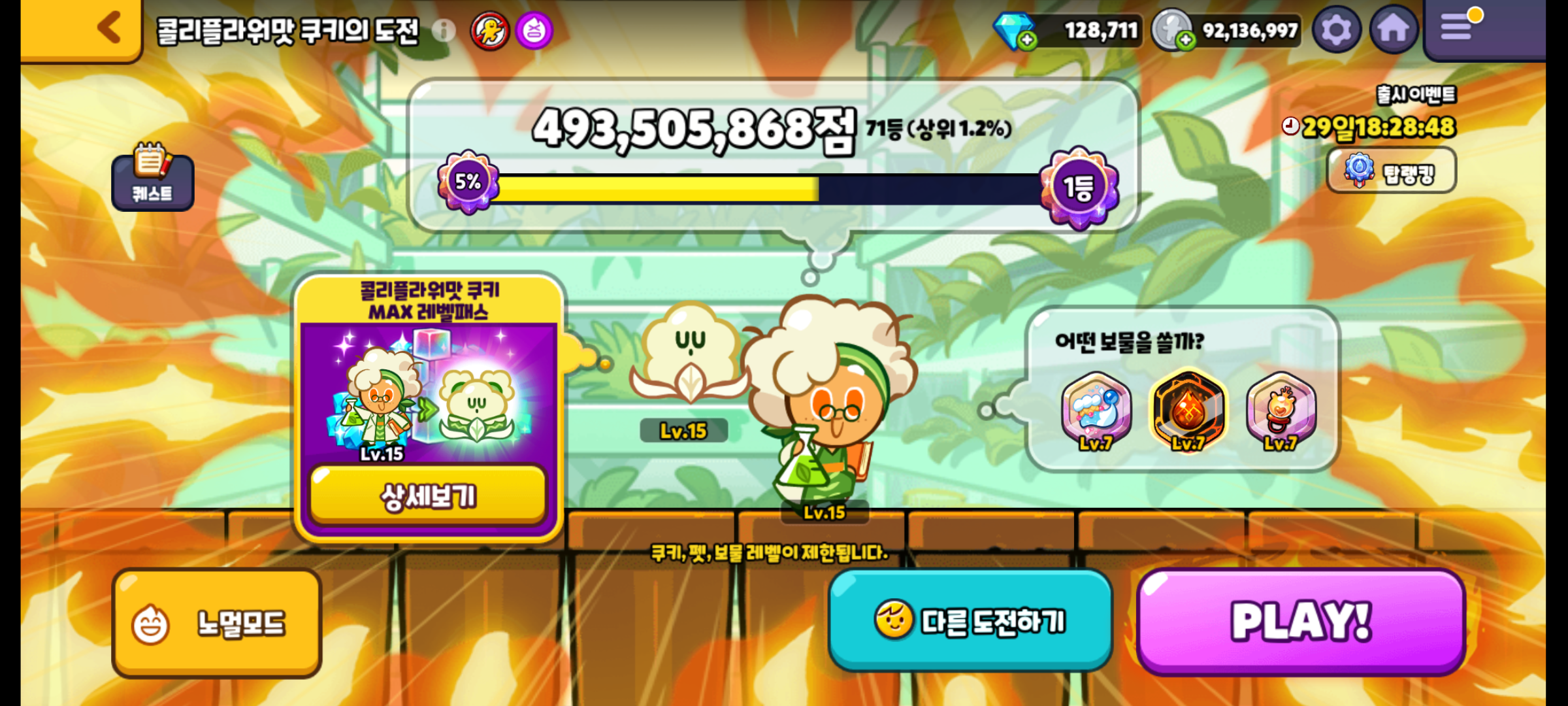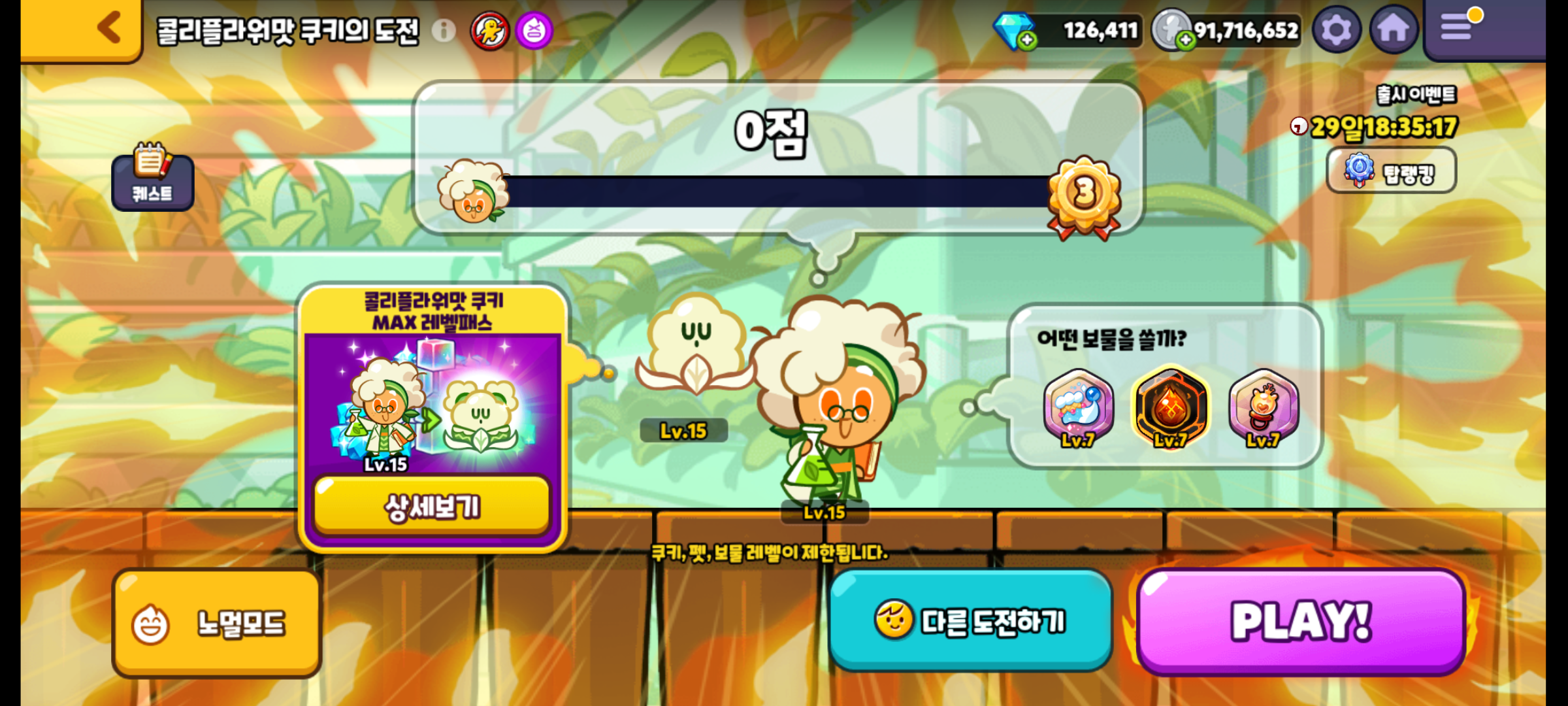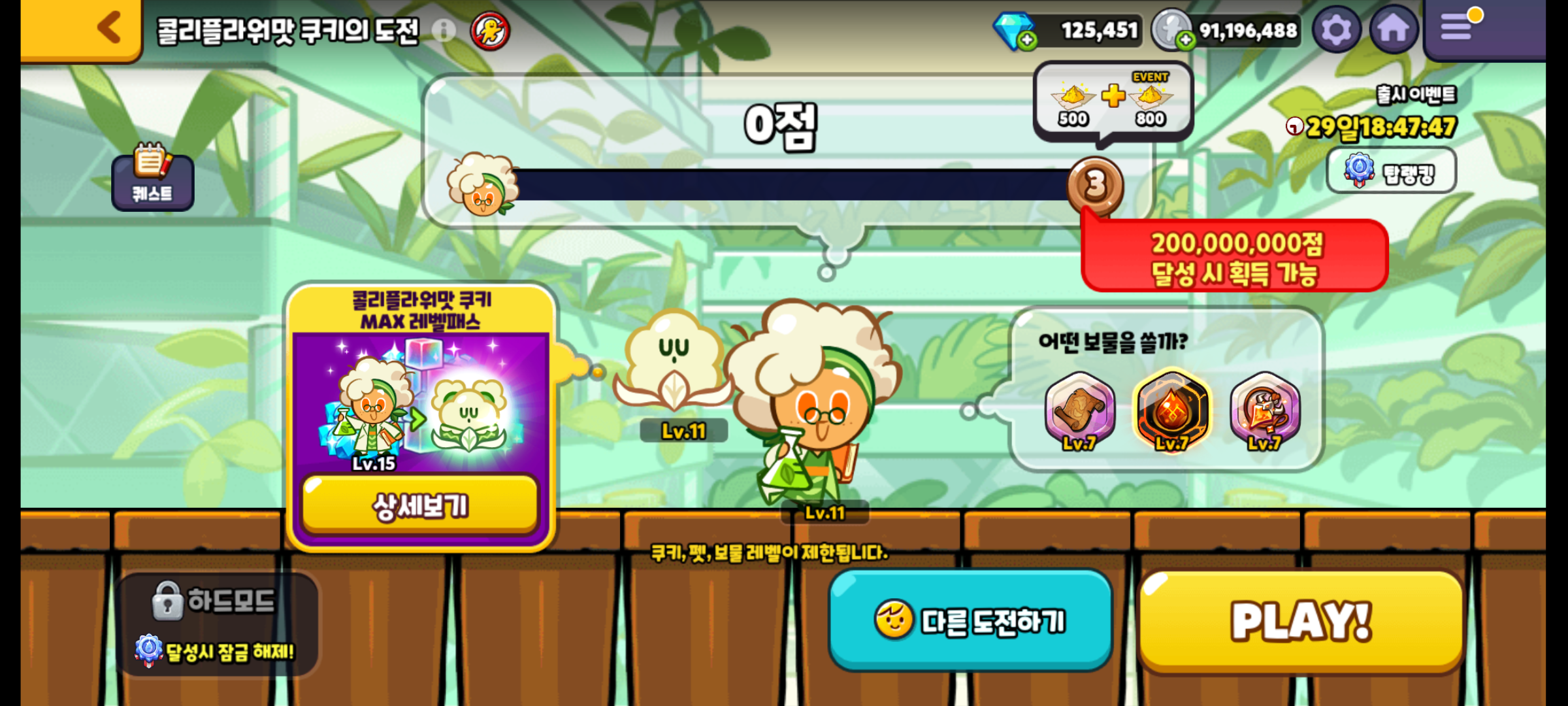 쿠키런 오븐브레이크 콜리플라워맛 쿠키의 도전 노멀모드 및 하드모드!!