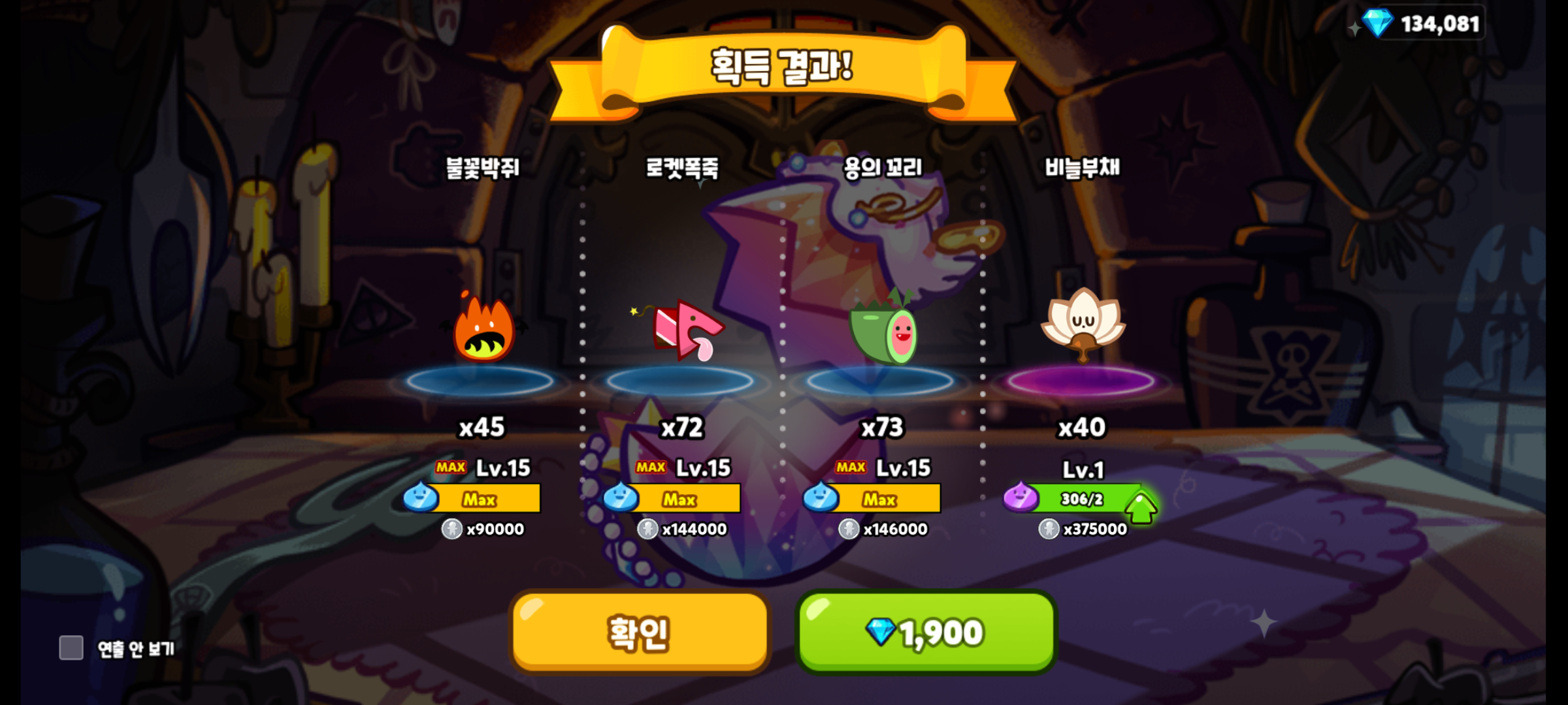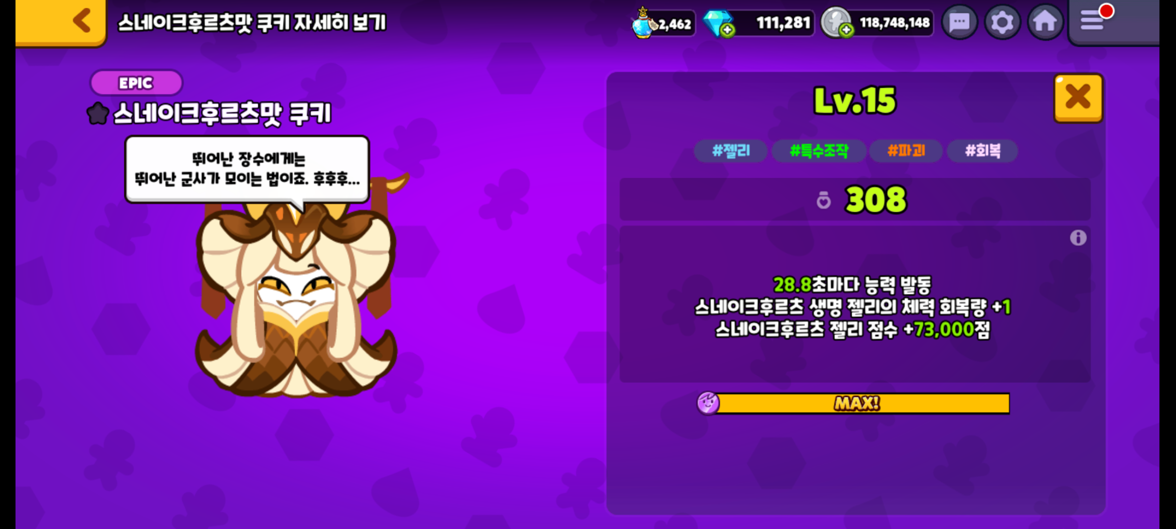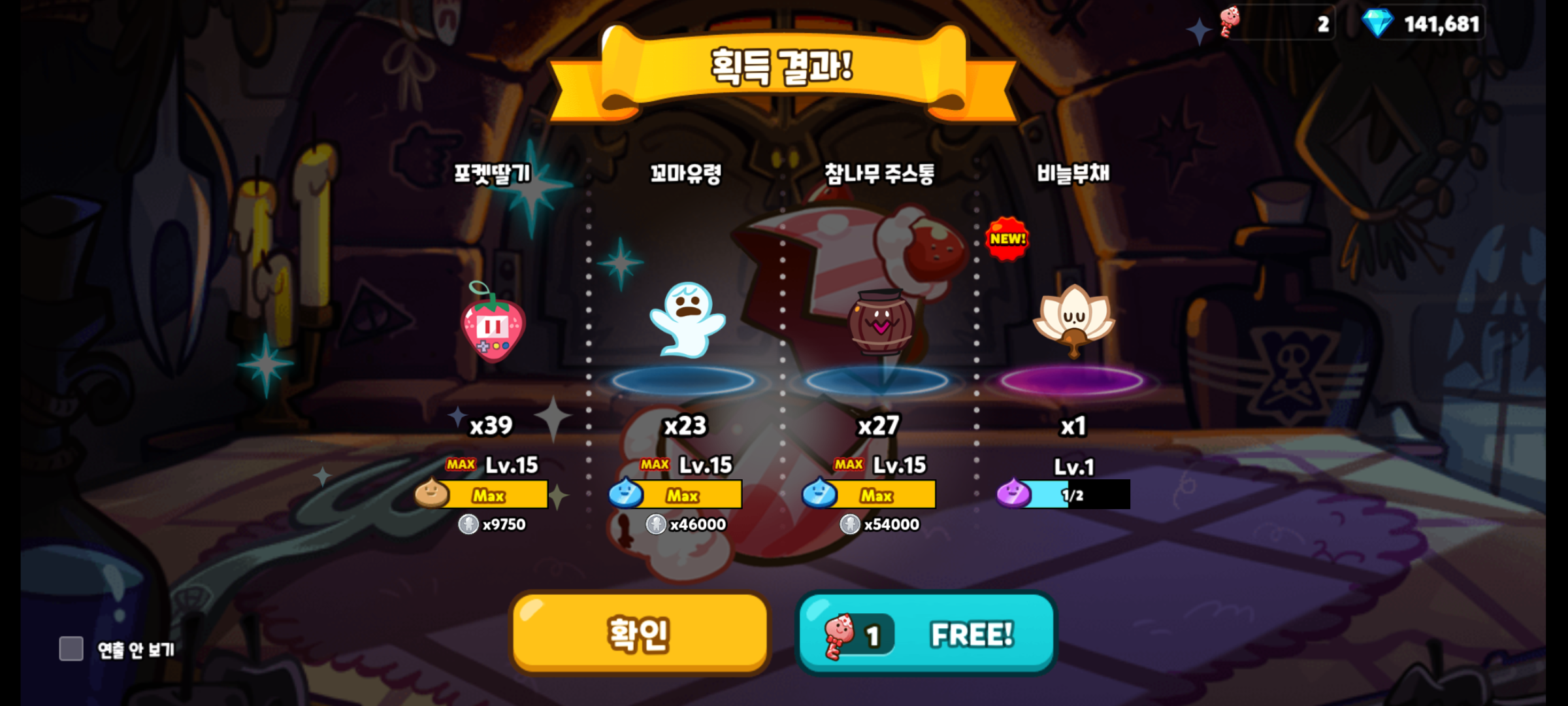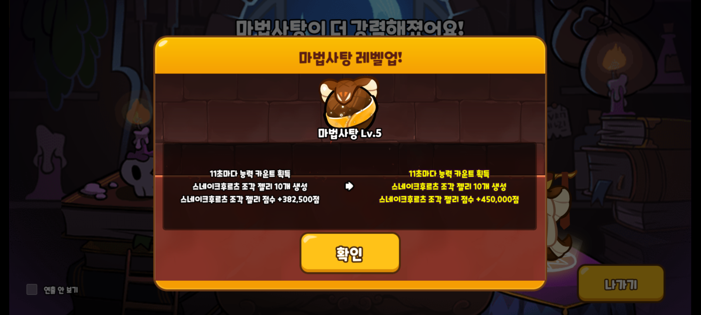 스네이크후르츠맛 쿠키의 마법사탕도 만렙 찍었습니다.
